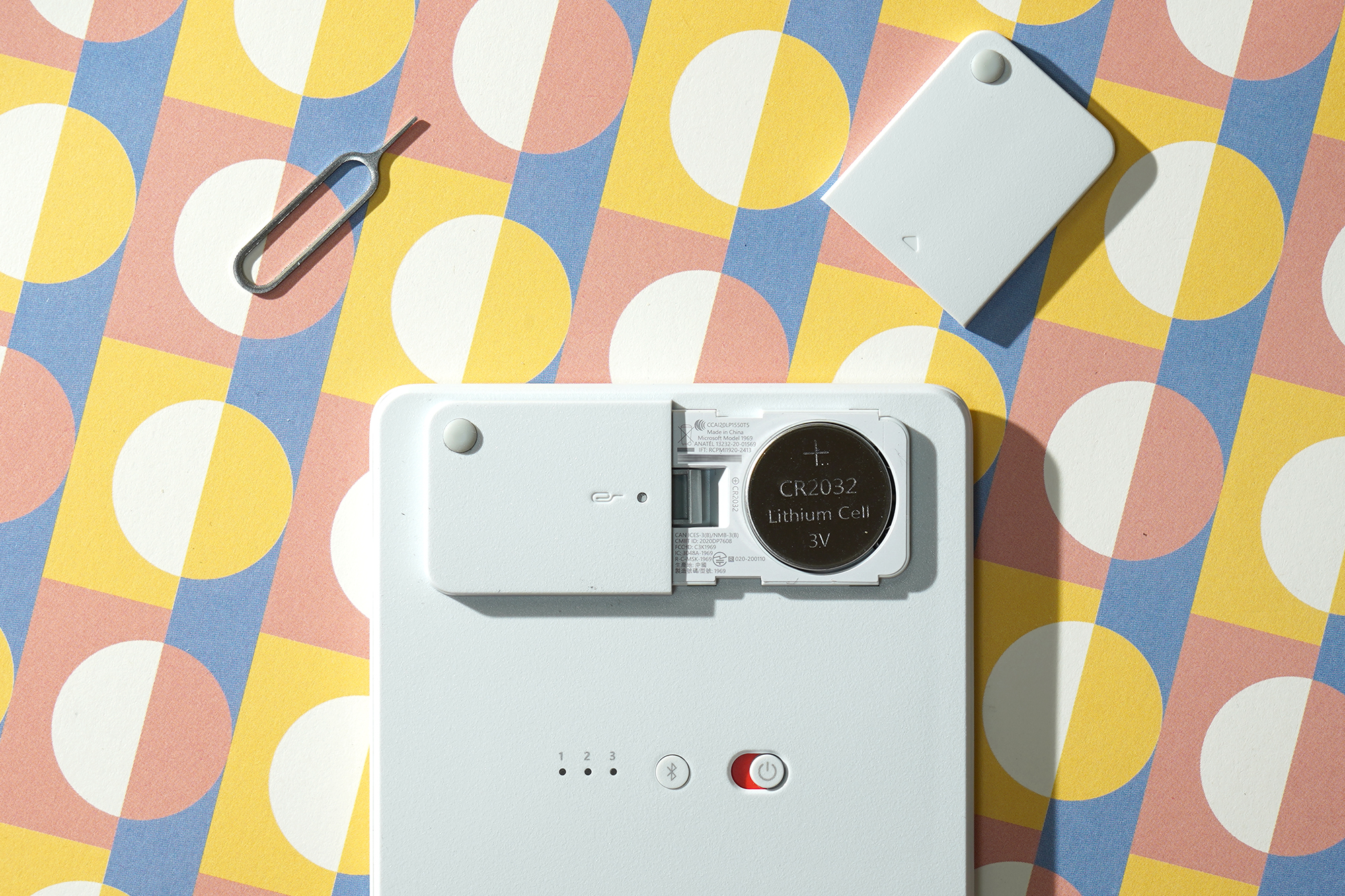 마이크로소프트 넘버패드의 배터리는 뒤쪽에 배치되어 있는데요. 얇은 두께 때문에 일반적으로 사용되는 AA 혹은 AAA 사이즈 배터리가 아니라 CR 코인셀 배터리를 사용합니다.