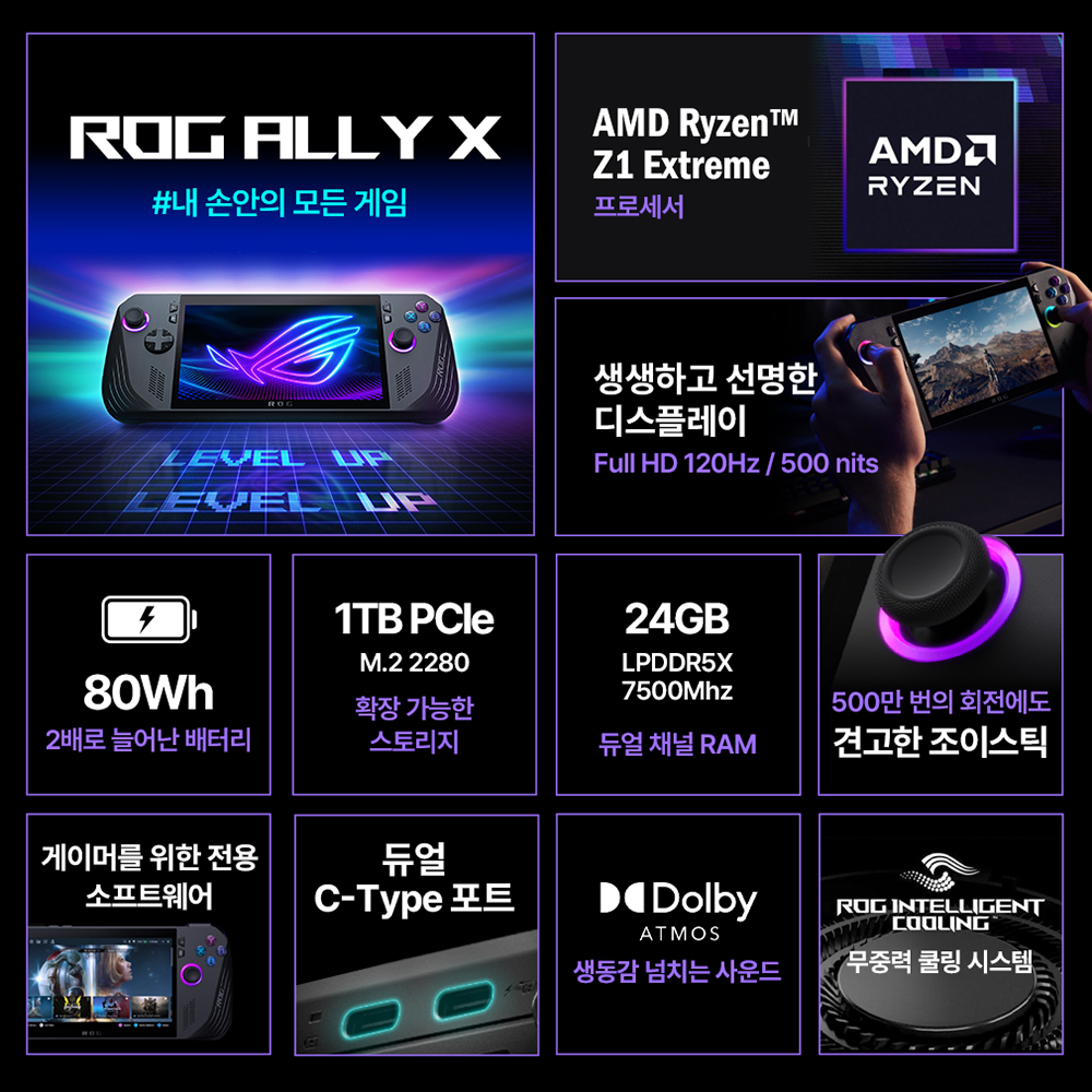 에이수스의 ASUS ROG Ally는 최근 유행하고 있는 휴대용 게이밍 UMPC라고 할 수 있는데요. 1세대 제품인 로갈리의 경우에는 설계 결함으로 인해서 발열 때문에 마이크로SD 카드 슬롯이 고장나는 경우가 종종 발생했습니다. 그래서 이번에 다양한 부분들이 개선된 업그레이드 버전의 에이수스 로그 엘라이 X (ASUS ROG Ally X (2024) RC72LA)가 발표되었는데요. 특징을 자세하게 확인해 보도록 하겠습니다.