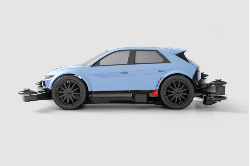 현대 아이오닉5 N 미니카는 퍼포먼스 블루 무광 컬러로 제작되었는데요. IONIQ5 N을 잘 표현한 것으로 보입니다. 그리고 AR 섀시가 적용되어서 공기역학적인 특징이 좋은 편이고 모터와 같은 부품들도 간편하게 교체할 수 있습니다.