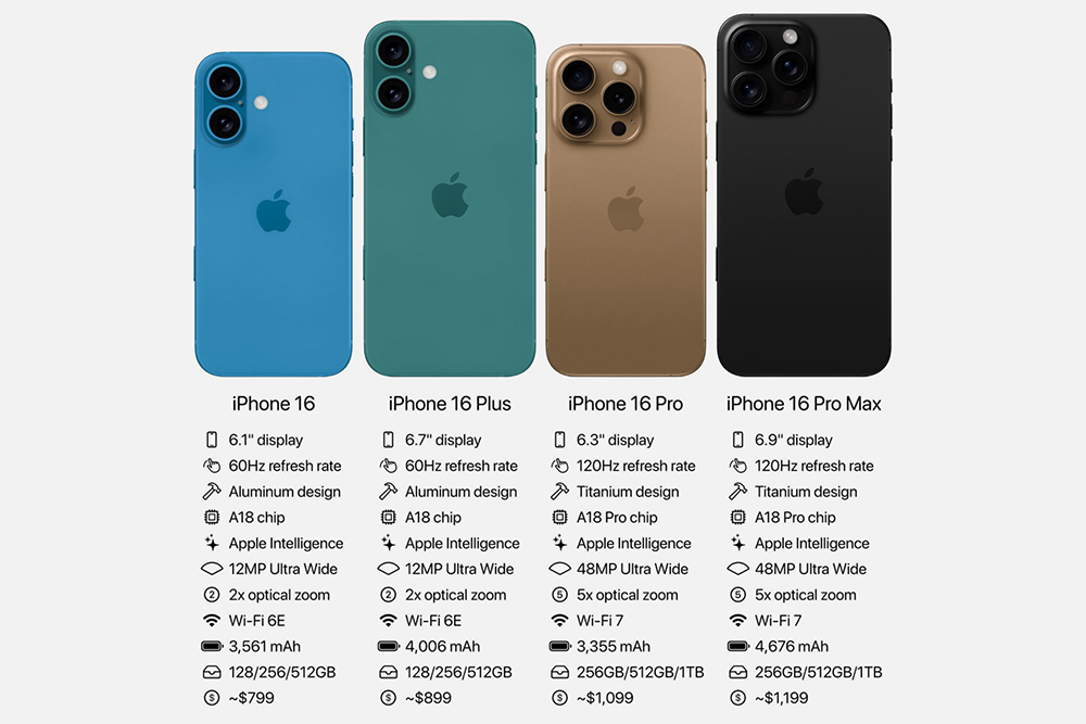 아이폰 16 시리즈는 아이폰 16, 아이폰 16 플러스, 아이폰 16 프로, 아이폰 16 프로 맥스 총 4가지 제품으로 출시되었습니다. 주목해 보아야 할 부분은 애플의 인공지능 기능인 apple intelligence이 탑재되었다는 점이고 아마도 모두 8GB 메모리가 탑재될 것으로 예상됩니다.