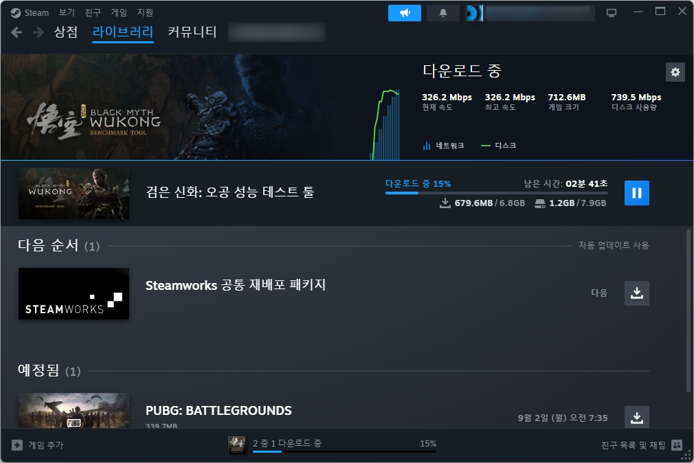 검은 신화: 오공 성능 테스트 툴의 경우에는 스팀에서 당연하지만 무료로 다운로드를 받을 수 있습니다. 그리고 자신이 원하는 드라이브에 설치를 눌러주면 되고 용량은 약 7.9GB로 크게 부담이 되는 편은 아니라고 생각이 되었습니다.