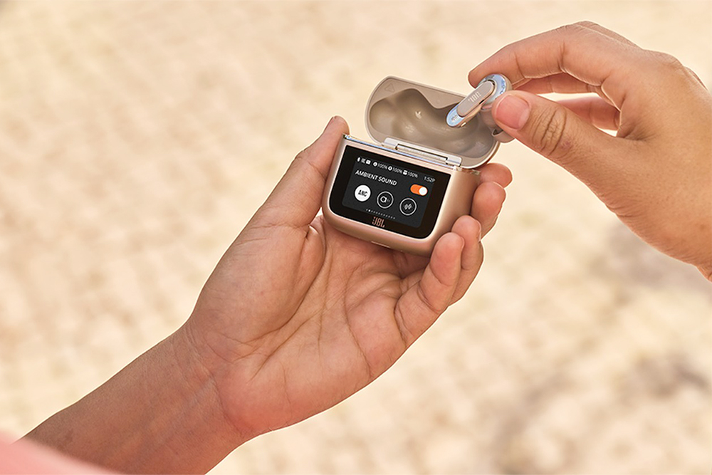 JBL Tour Pro 3에서 주목해 보아야 할 부분은 충전 케이스 부분에 1.57인치 터치 스크린이 탑재되었다는 점입니다. 재미있는 부분은 이어버드의 배터리 정보를 확인할 수 있는 것은 물론이고 음악을 제어하거나 전화를 받을 수 있습니다. 특히 오디오 전송기능을 갖추고 있어서 아날로그 혹은 USB 오디오 소스를 이어버드로 전송할 수 있습니다. 비행기나 헬스장 등에서 유용하게 활용할 수 있습니다.