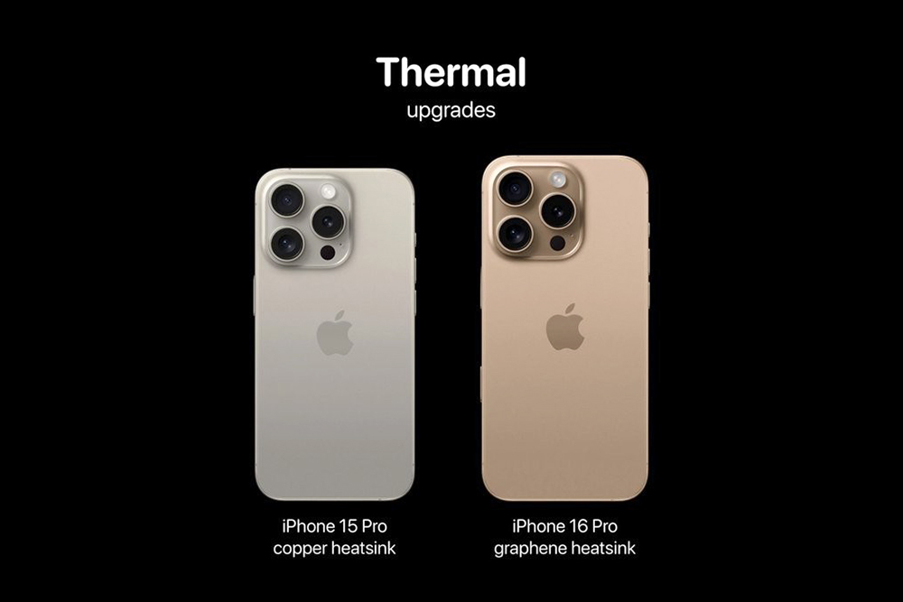 아이폰15 프로에는 구리 히트싱크가 탑재되었던 것과 비교해서 아이폰16 프로에는 그레핀 히트싱크가 탑재되었습니다. 발열 해소 측면에서 도움이 되는 것은 물론이고 게임을 플레이할 때에도 유용할 것으로 보입니다.