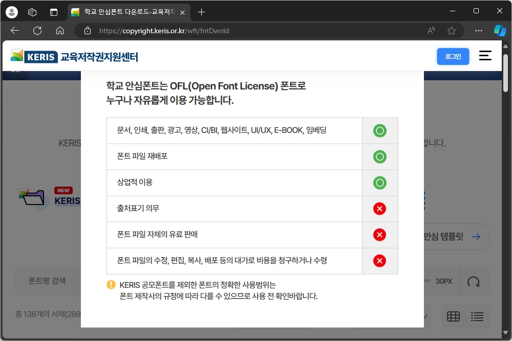 교육저작권지원센터(KERIS)에서 제공하는 서체는 총 138개입니다. 그리고 어떤 식으로 디자인되어 있는지 자신이 원하는 문구를 넣어 확인해 볼 수 있다는 점도 편리한 부분이라고 할 수 있습니다.