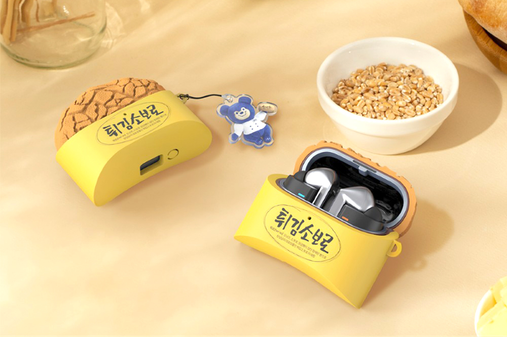 성심당 튀김소보로 케이스는 갤럭시 버즈3와 버즈3 프로에서 사용할 수 있는데요. 빵의 노란색 포장지와 함께 내부의 팥소까지 디테일을 살려서 디자인되었다는 점이 인상적인 부분입니다.