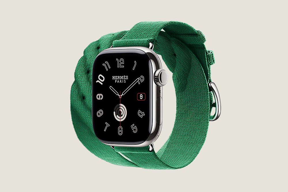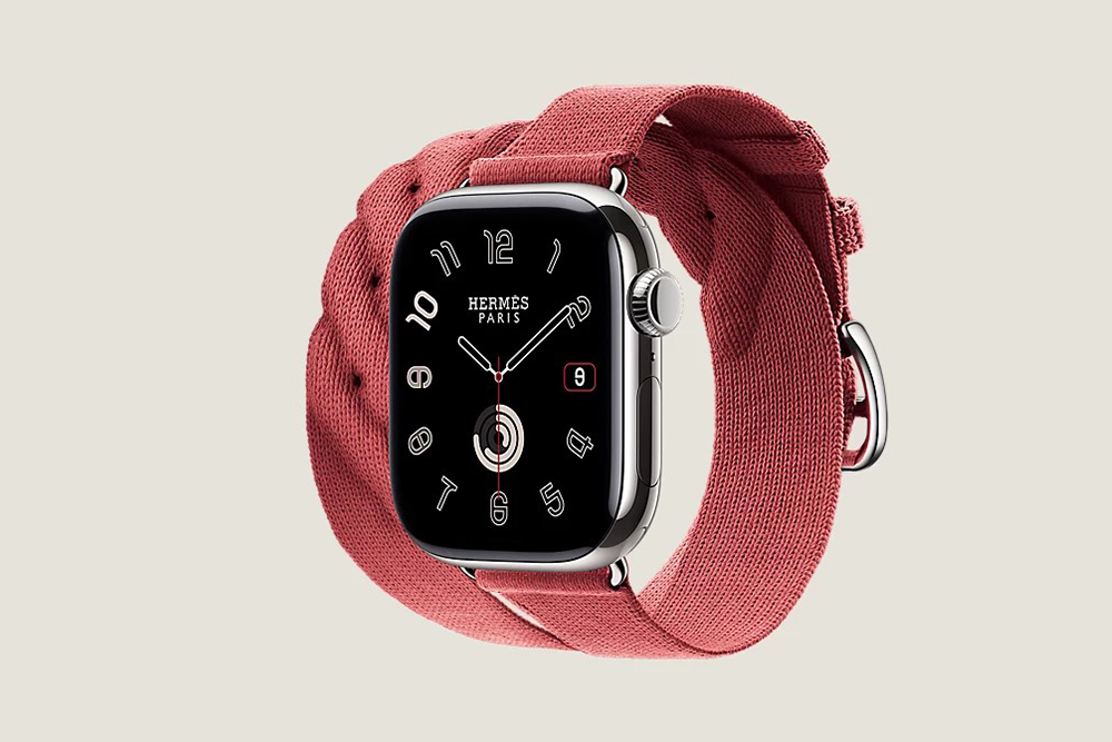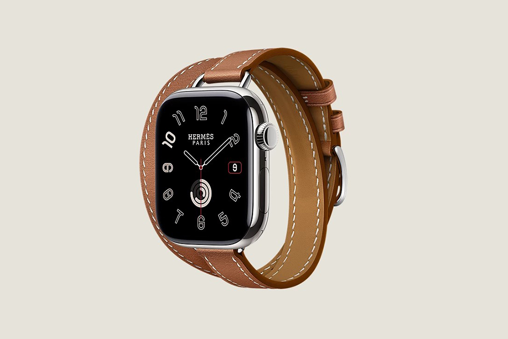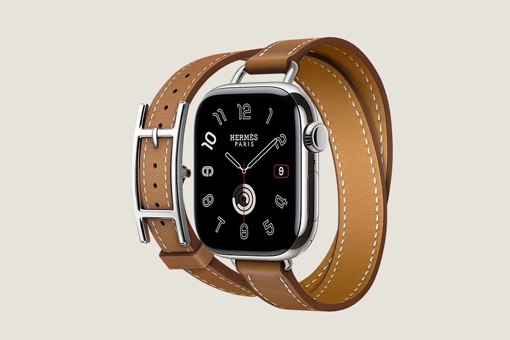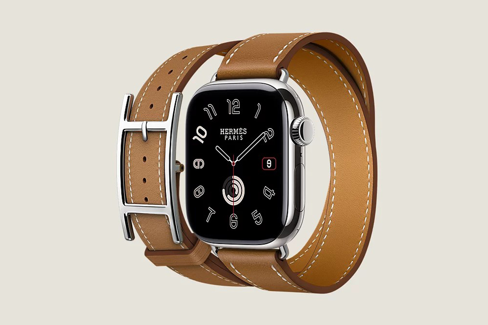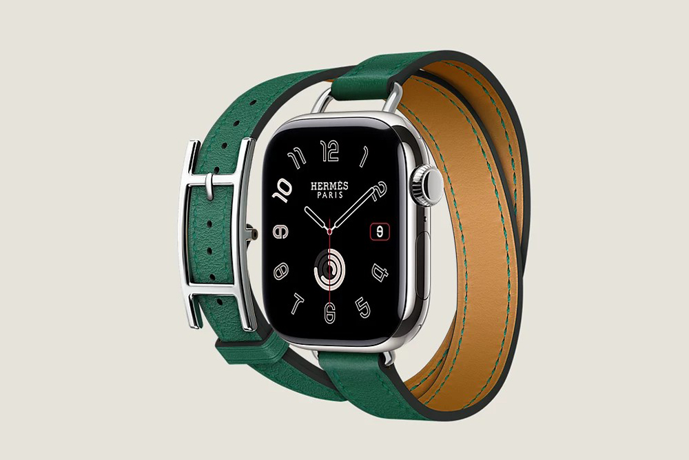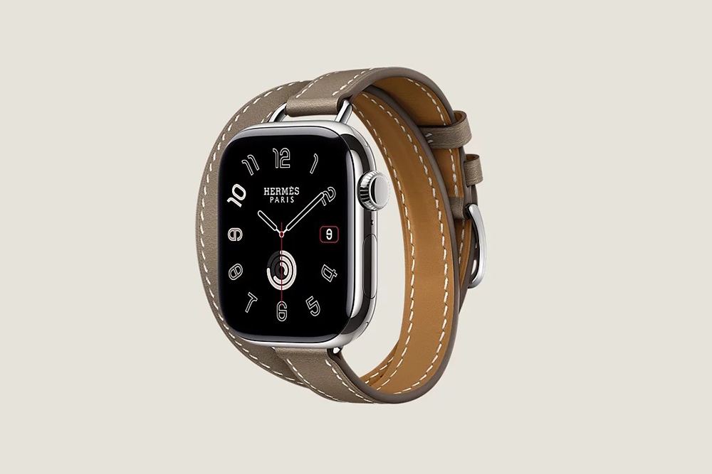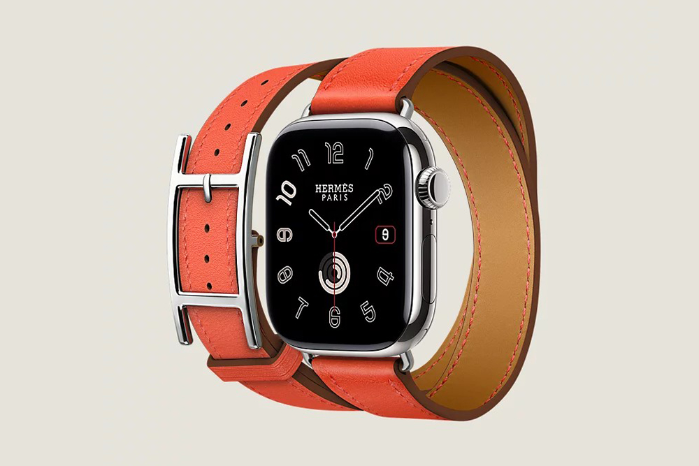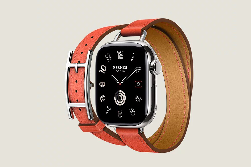 시리즈 10 케이스 & 애플 워치 에르메스 스트랩, Hapi Attelage 더블 투어 42mm는 골드와 베르 모아양 그리고 블루 드 프랑스와 오랑쥬 필드 4가지 색상으로 제작되었고 가격은 2,284,000입니다.