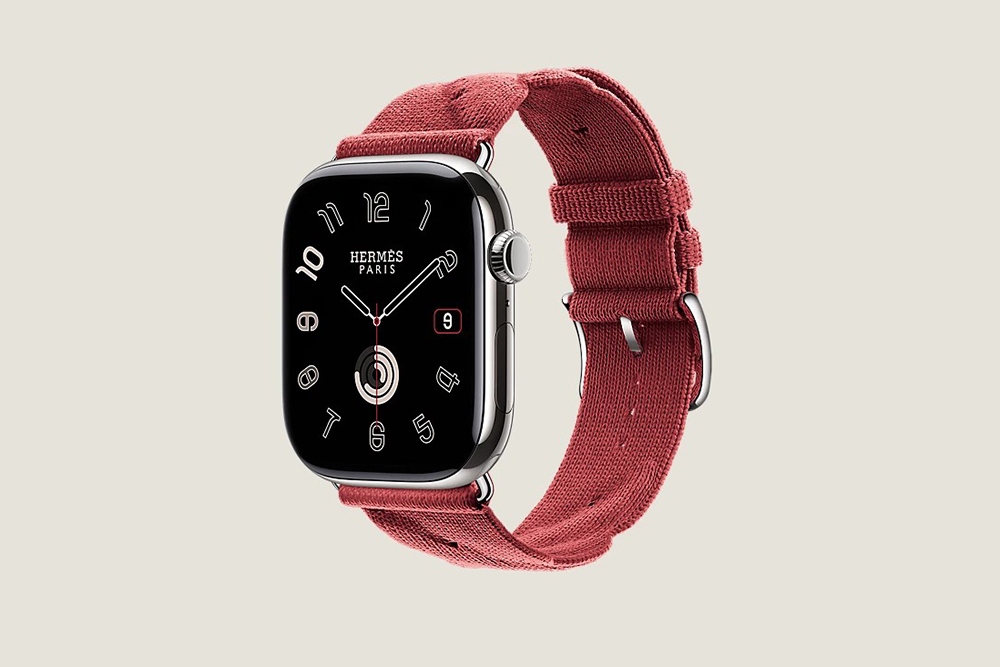 시리즈 10 케이스 & 애플 워치 에르메스 스트랩, Torsade 싱글 투어 46mm은 네이비와 루즈 그르나 두 가지 색상으로 제작되었고 가격은 1,880,000입니다.