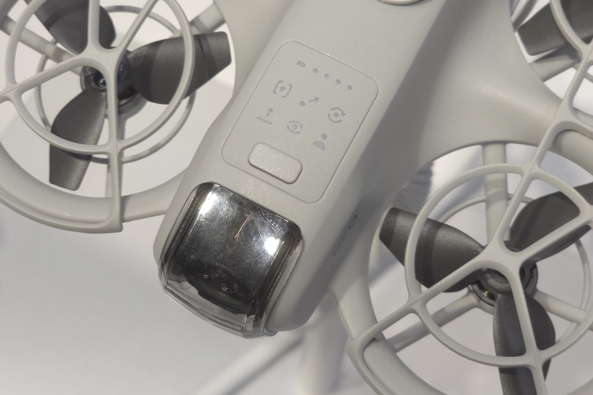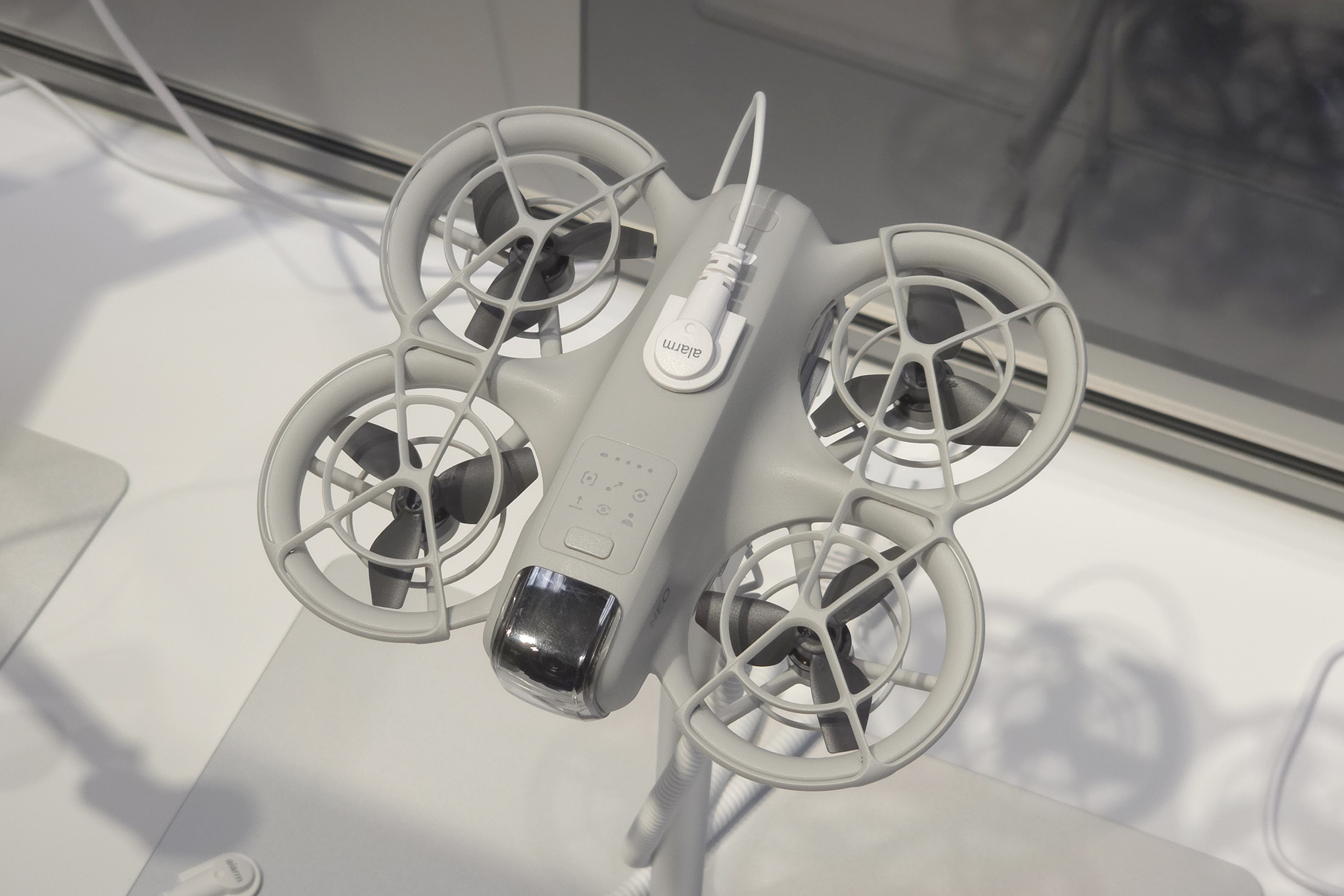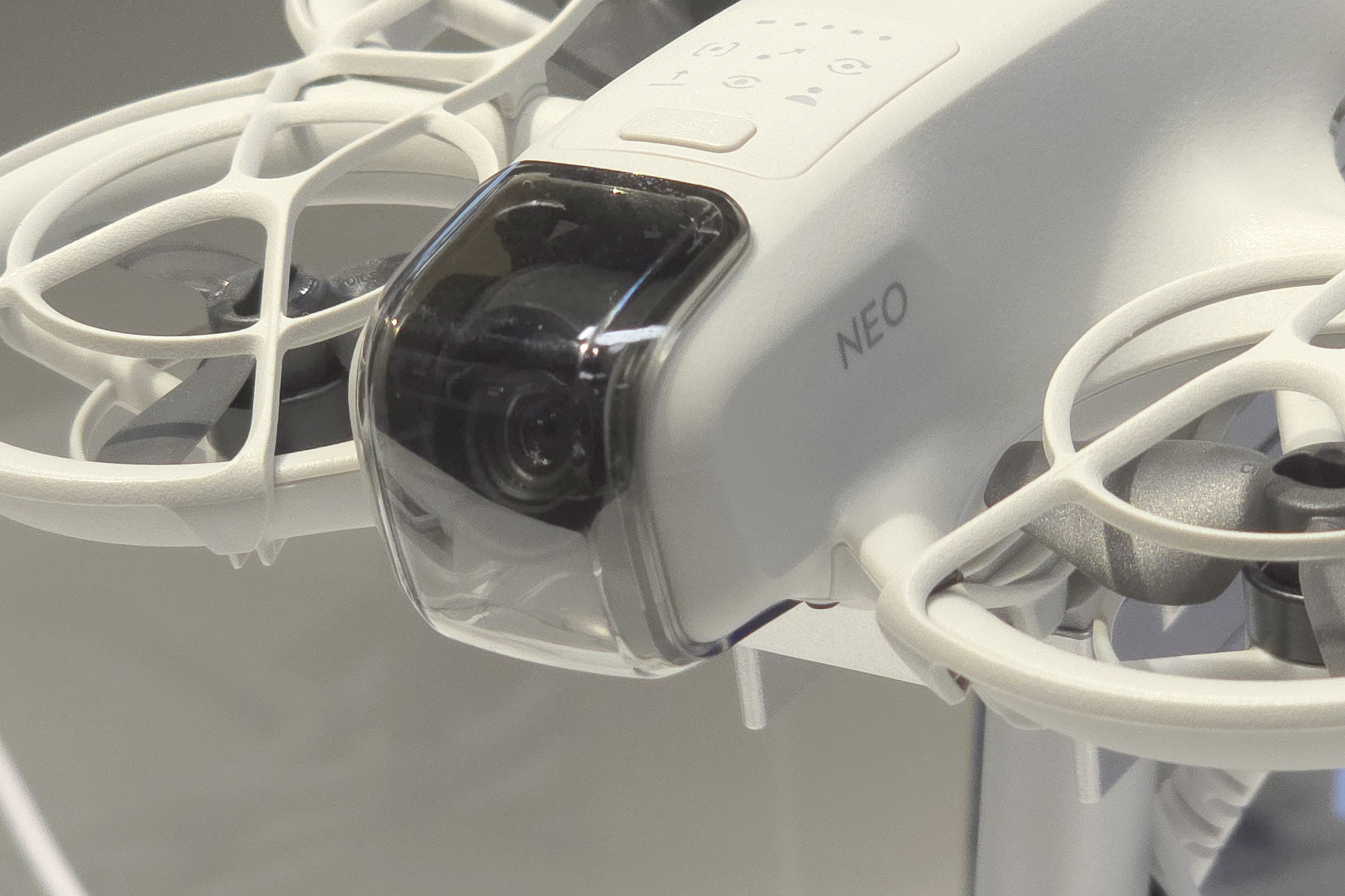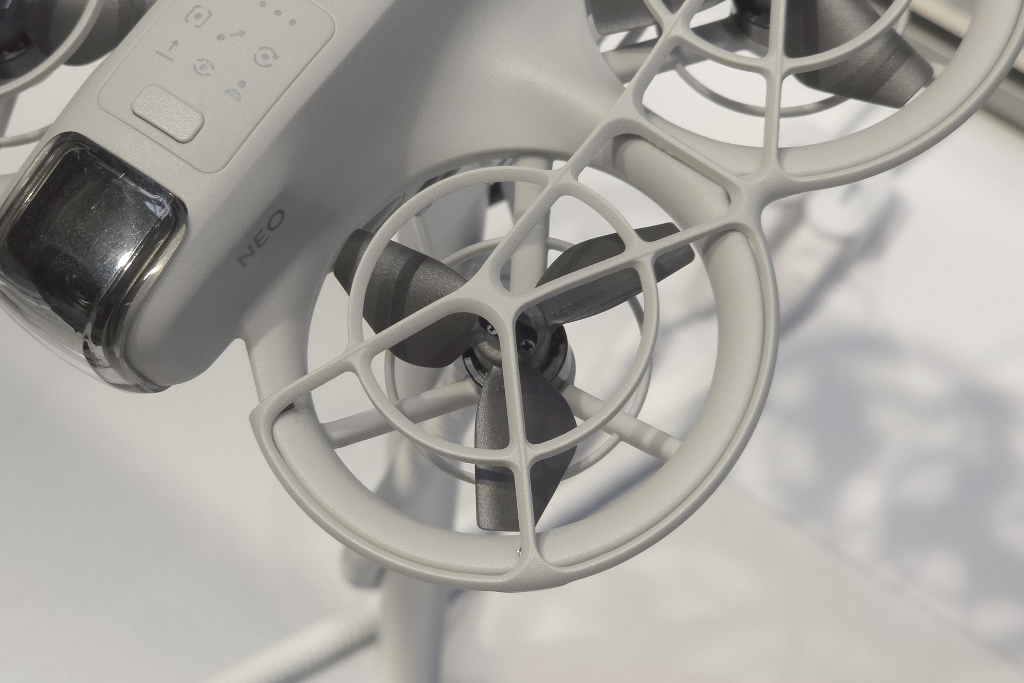 DJI NEO(네오)에는 4개의 프로펠러가 장착되어 있고 모두 가드로 보호되어 있어서 근거리에서도 상대적으로 안정적으로 사용할 수 있다는 장점이 있습니다. 그래도 손가락 등이 들어가지 않도록 항상 주의해 주어야 합니다.
