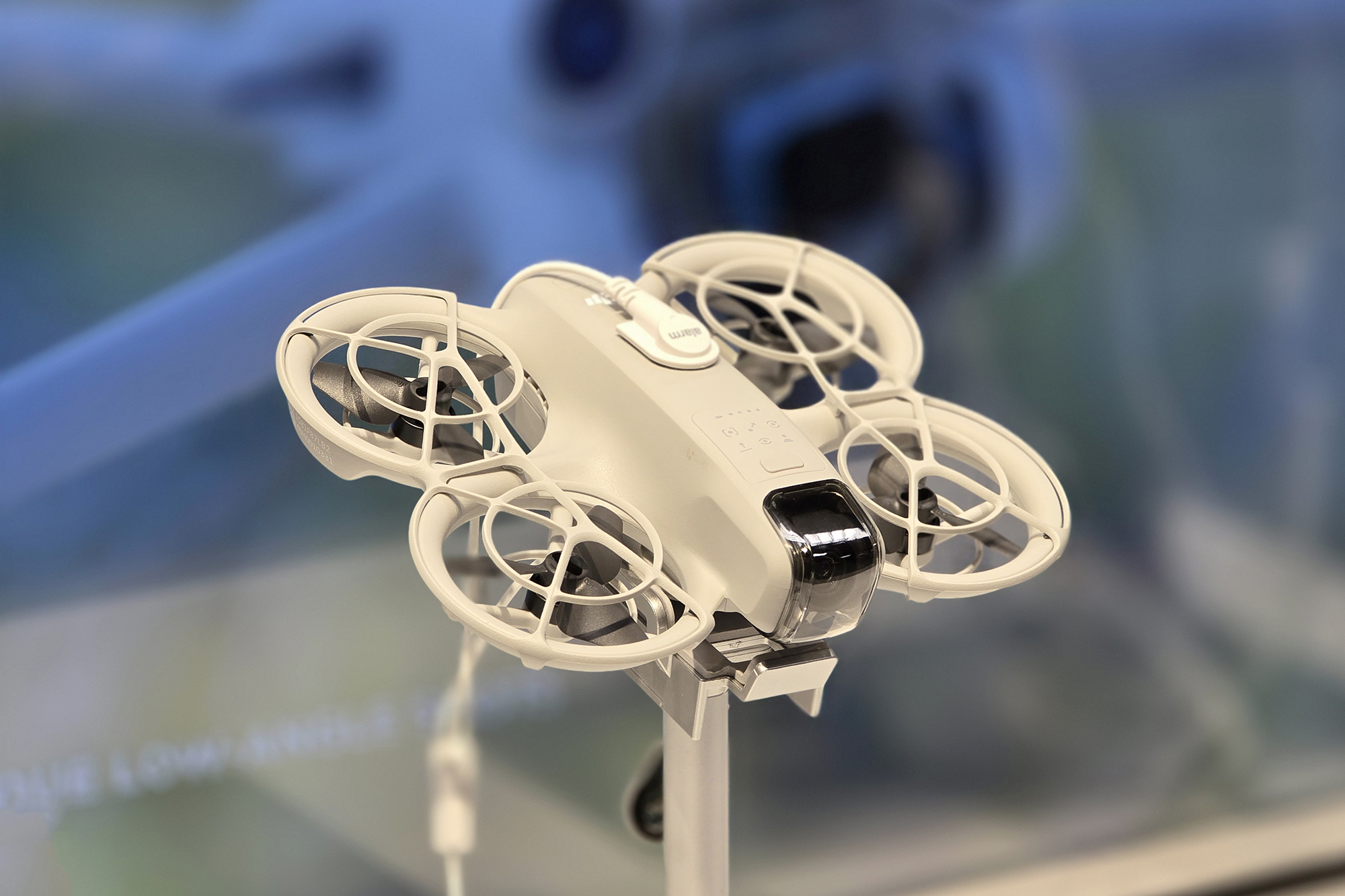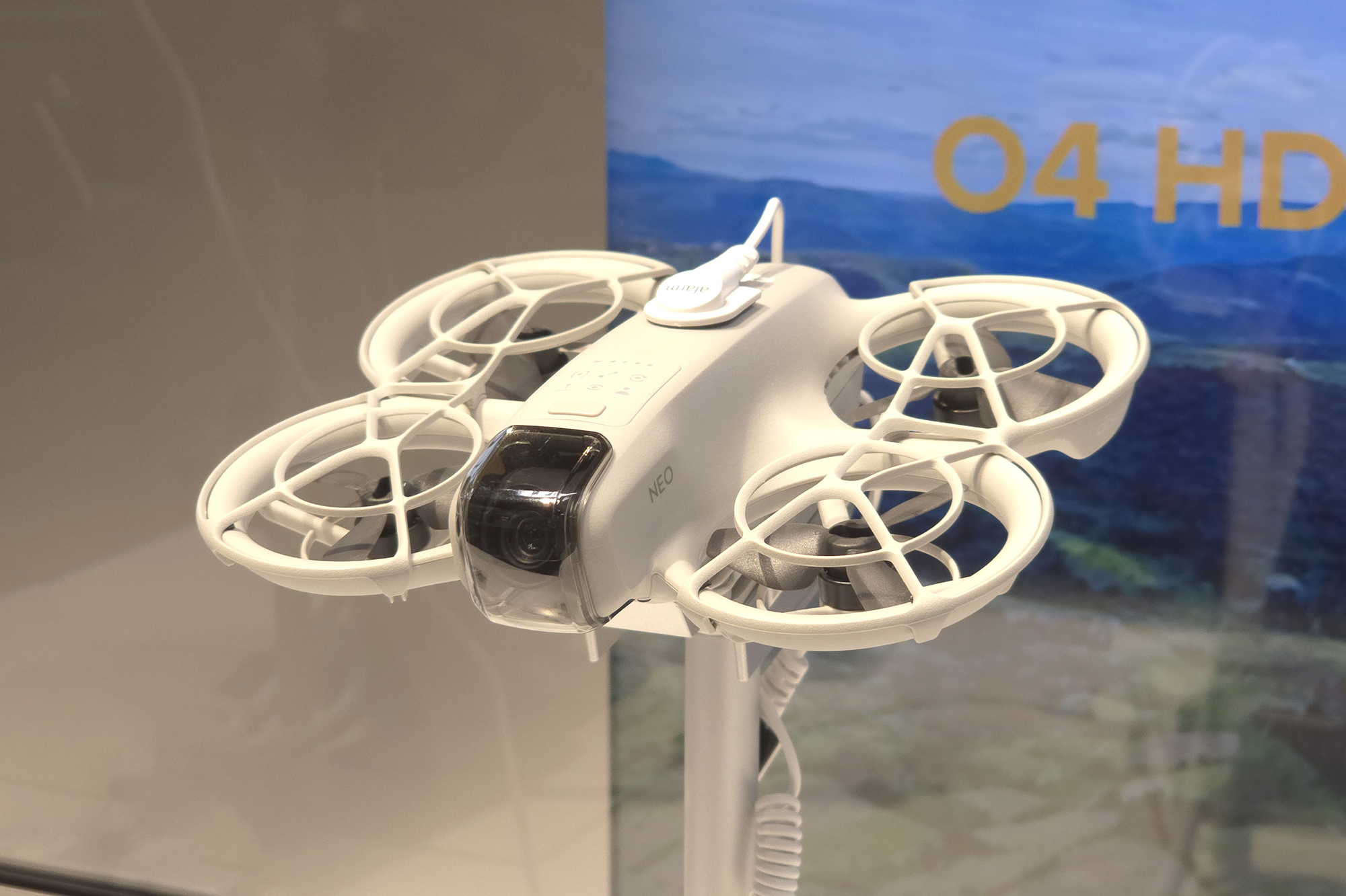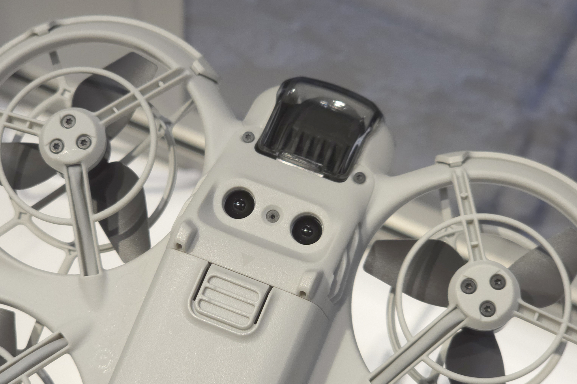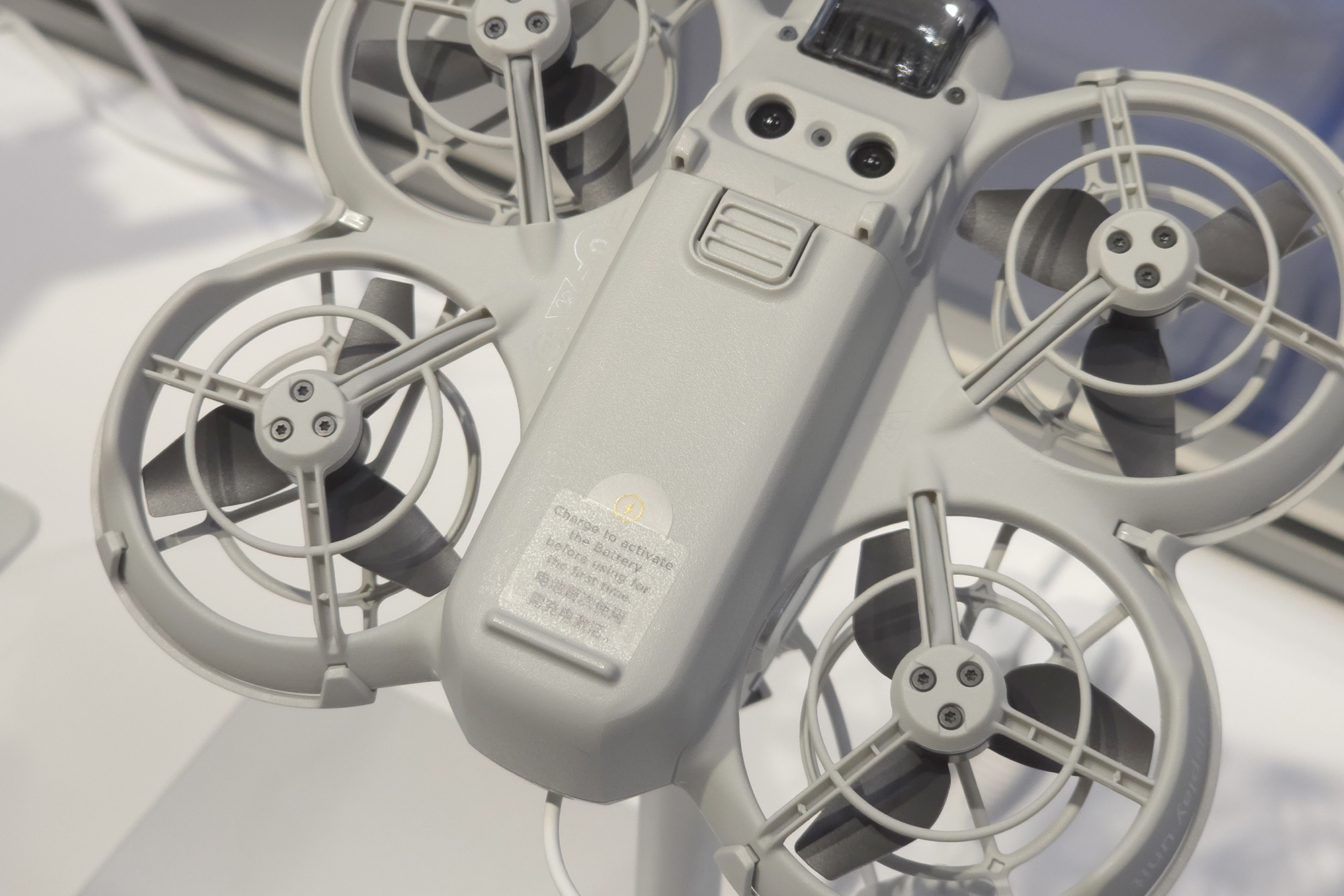 DJI NEO(네오)에는 4개의 프로펠러가 장착되어 있고 모두 가드로 보호되어 있어서 근거리에서도 상대적으로 안정적으로 사용할 수 있다는 장점이 있습니다. 그래도 손가락 등이 들어가지 않도록 항상 주의해 주어야 합니다.
