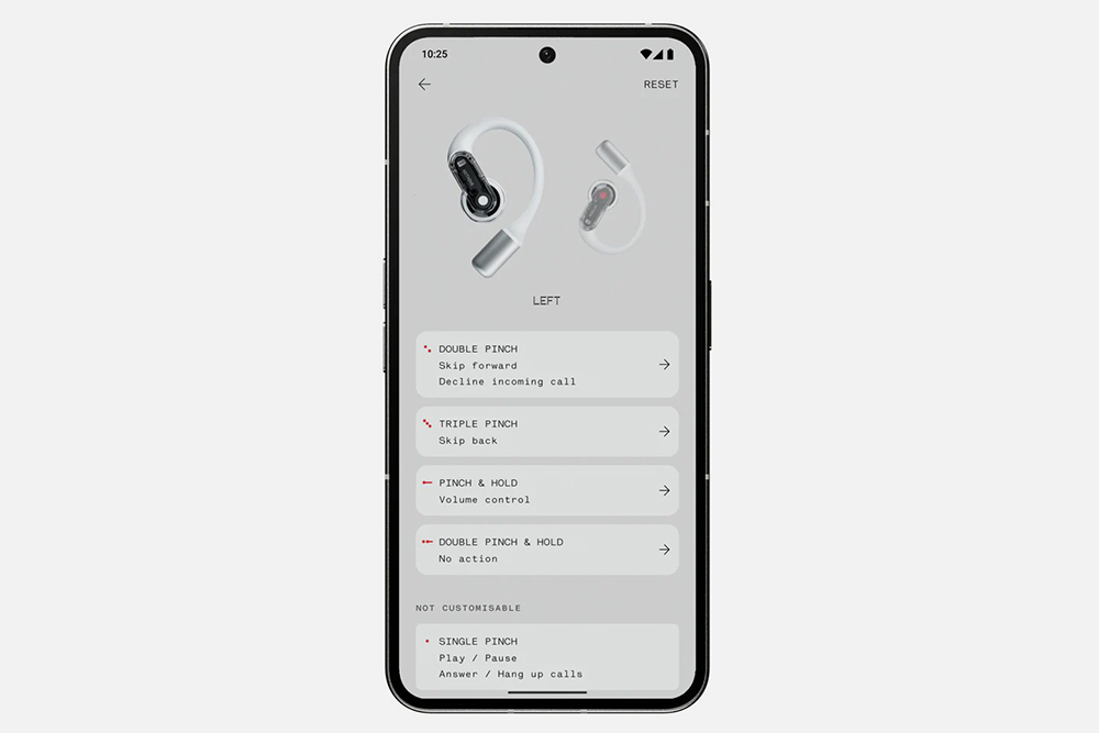 낫싱 이어 오픈(Nothing Ear Open)은 Nothing X 앱을 통해서 8밴드 EQ(이퀄라이저)와 사용자 지정 제어 그리고 듀얼 커넥션과 같은 기능을 제공합니다. 그리고 Nothing OS가 설치된 스마트폰과 함께 사용하면 음성으로 ChatGPT에 엑세스하거나 맞춤형 Nothing 위젯을 사용할 수도 있습니다.