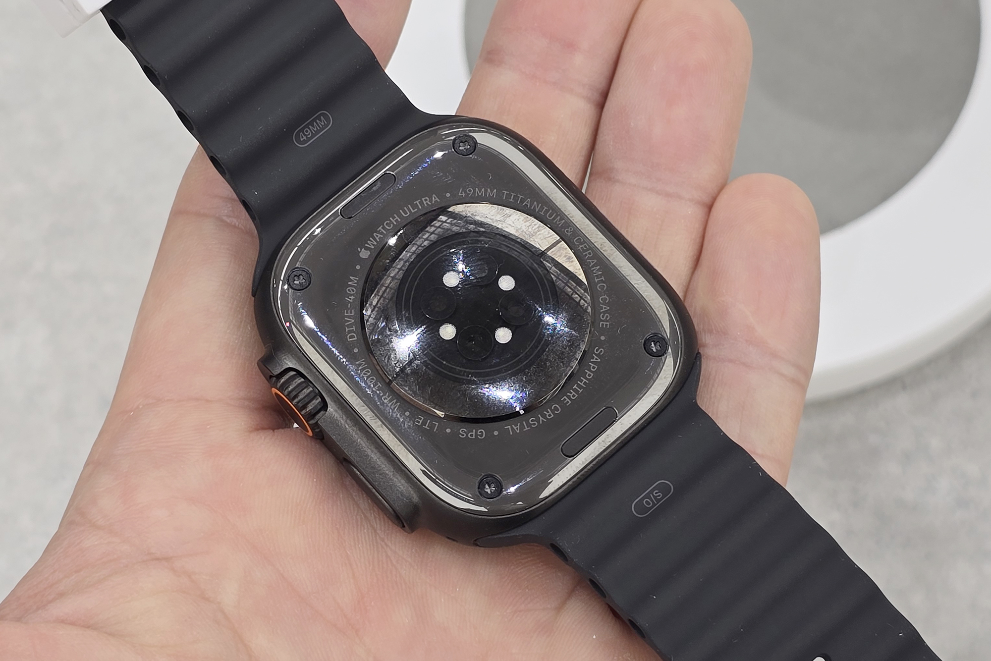 애플워치 울트라2에는 49mm 티타늄 케이스가 적용되었습니다. 애플워치 시리즈 중에서 크기가 가장 큰 편입니다. 그래서 손목이 가는 분들은 조금은 어색하게 느껴질 수 있을 것으로 보입니다. 참고로 무게는 약 61.3g입니다. 그리고 100미터 방수가 가능해서 수여할 때 활용할 수 있습니다.