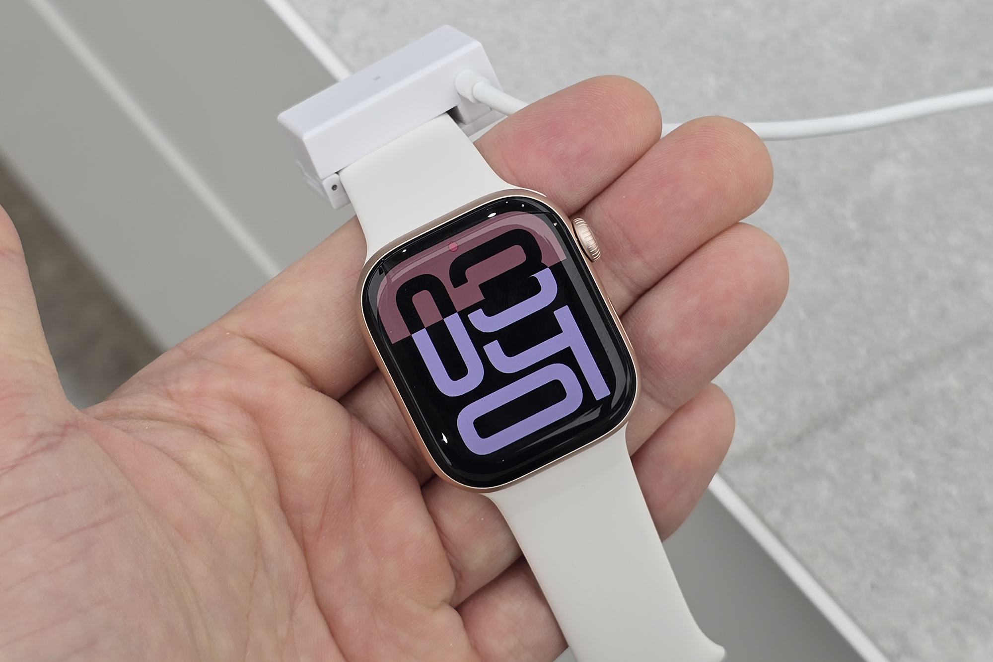 애플워치10 42mm 알루미늄 케이스 로즈 골드 색상의 경우에는 제트 블랙과는 다르게 무광으로 마무리된 것을 확인할 수 있습니다. 자신의 취향에 맞는 컬러를 선택해 주는 것이 좋을 것 같습니다.