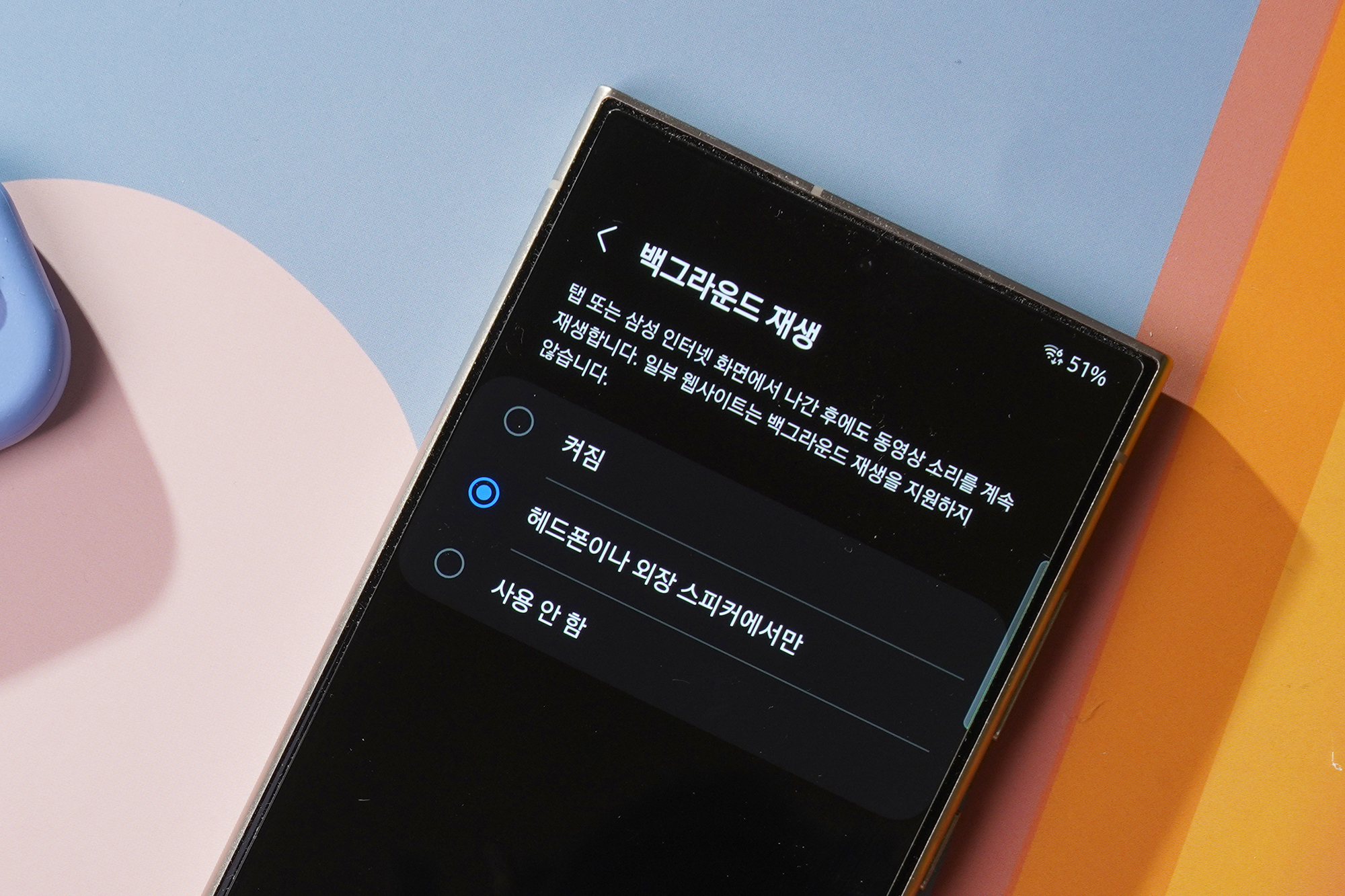 백그라운드 재생의 경우에도 유튜브 프리미엄에서 제공되는 기능으로 화면을 꺼도 오디오도 동영상의 내용을 감상할 수 있습니다. 그리고 옵션으로 켜짐이나 헤드폰이나 외장 스피커에서만으로 설정할 수 있습니다.