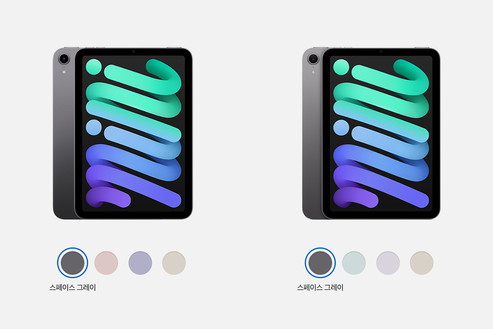 iPad mini(A17 Pro 모델)의 크기는 6세대 제품과 비교해서 완벽하게 동일합니다. 세로 195.4mm, 가로 134.8mm, 두께 6.3mm인데요. 휴대성이 우수하다는 장점이 있습니다. 그리고 색상은 6세대 제품이 스페이스 그레이, 핑크, 퍼플, 스타라이트 중에서 선택할 수 있었고 7세대 제품은 핑크가 블루로 변경되었고 같은 컬러라고 해도 미묘하게 다른 느낌입니다.