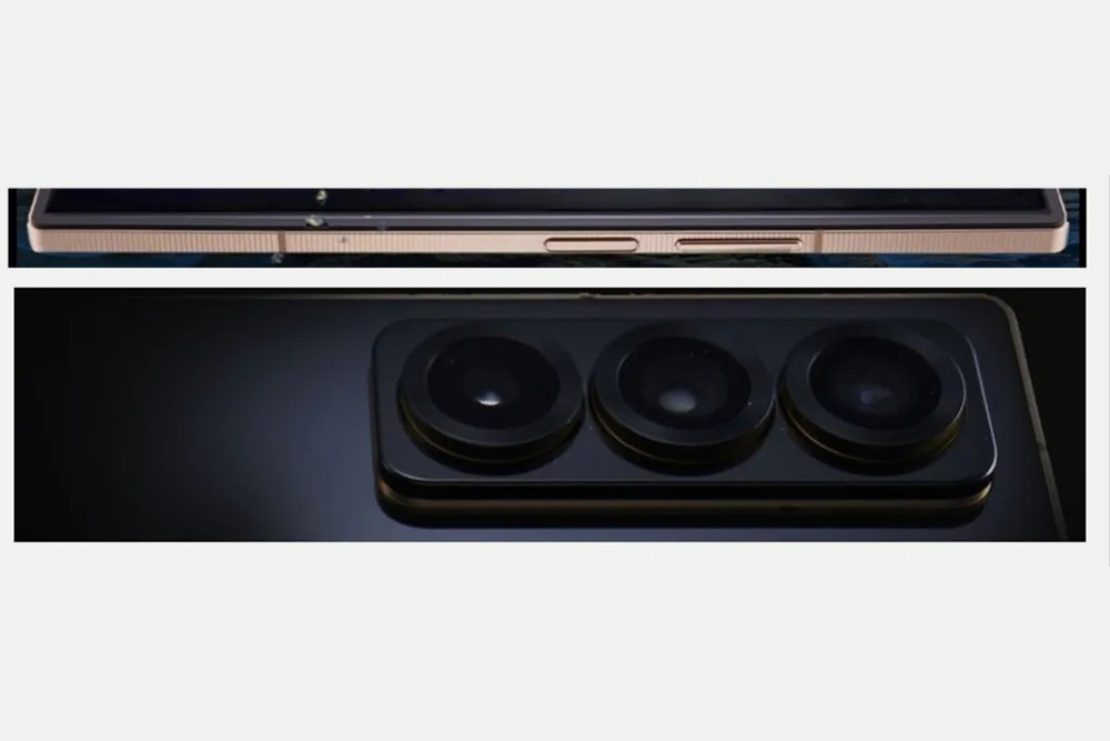 유출된 갤럭시Z 폴드 스페셜 에디션(SE)의 옆면과 카메라 디자인을 살펴보면 골드 컬러의 독특한 패턴이 각인되어 있고 카메라는 본체의 슬림함 때문에 상당히 많이 돌출되어 있는 것을 확인할 수 있습니다.