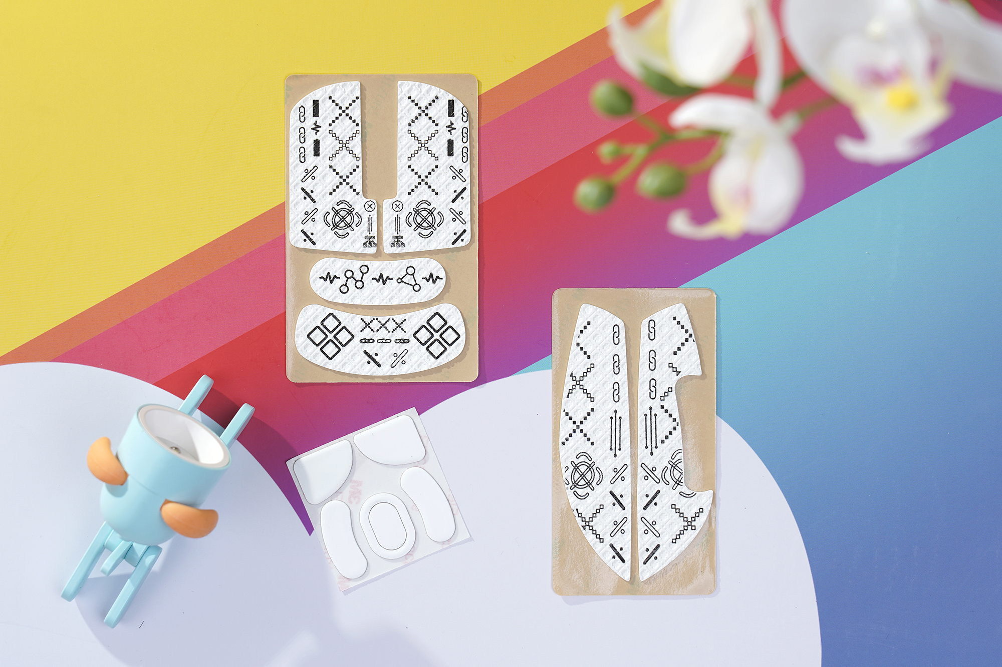 구성품을 살펴보면 사용자 설명서가 포함되어 있는데요. 유용한 부분은 한국어로도 표시되어 있다는 점입니다. 그리고 여분의 스몰 사이즈 PTFE FEET와 함께 논슬립 스티커가 제공됩니다. 잠자리 VXE R1 Pro MAX 초경량 게이밍 마우스의 표면이 약간 미끄러운 느낌인데요. 그립감이 조금 더 필요한 분들은 스티커를 사용하는 것이 좋을 것 같습니다.