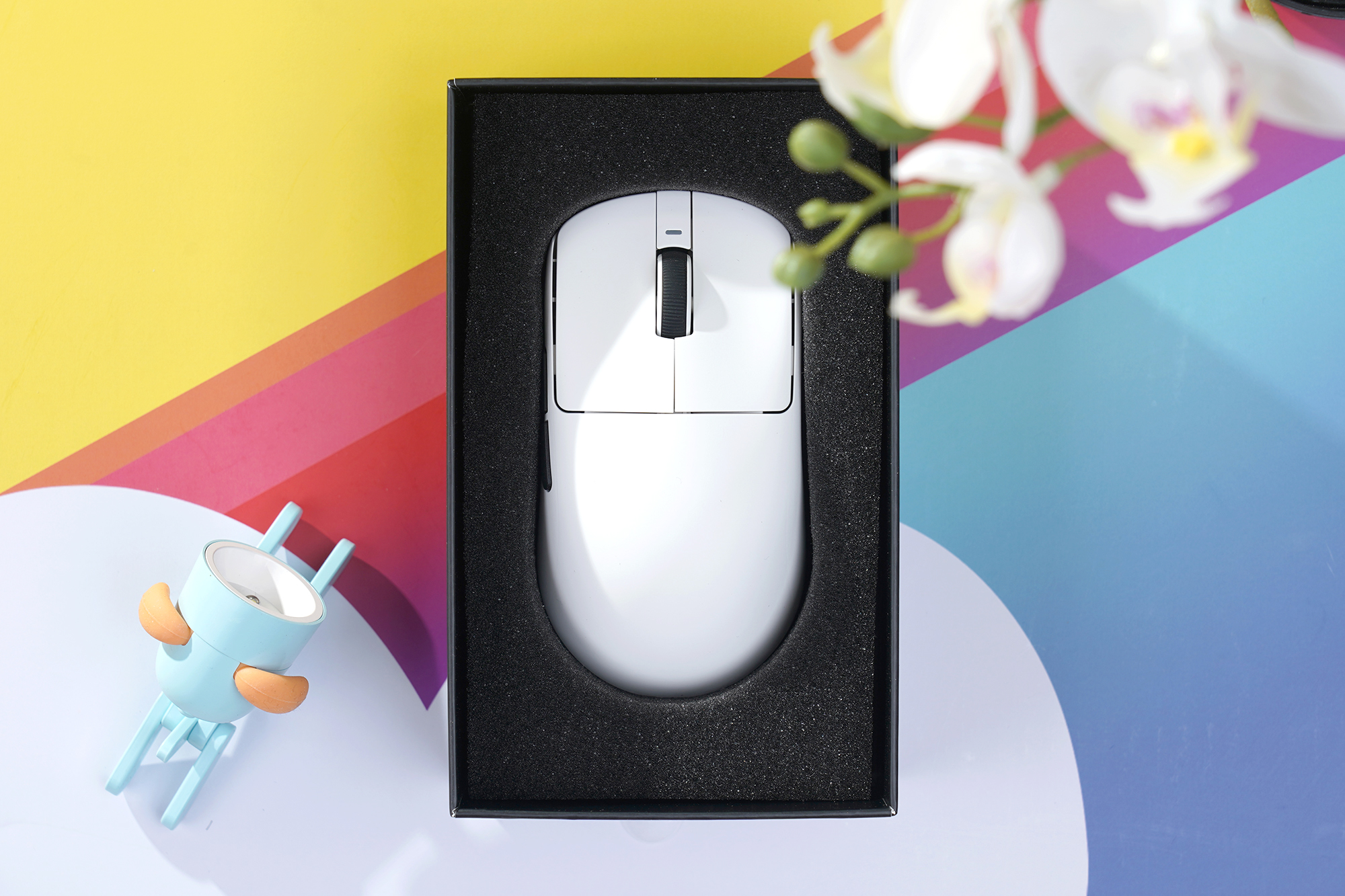 박스를 개봉하고 내부를 확인해 보면 잠자리 VXE R1 Pro MAX 초경량 게이밍 마우스 본체는 스펀지로 제작된 완충제에 수납되어 있고 액세서리 부품들은 별도의 박스에 들어 있었습니다. 상대적으로 저렴한 제품이지만 패키지에는 제품 신경을 썼다는 인상을 받았습니다.