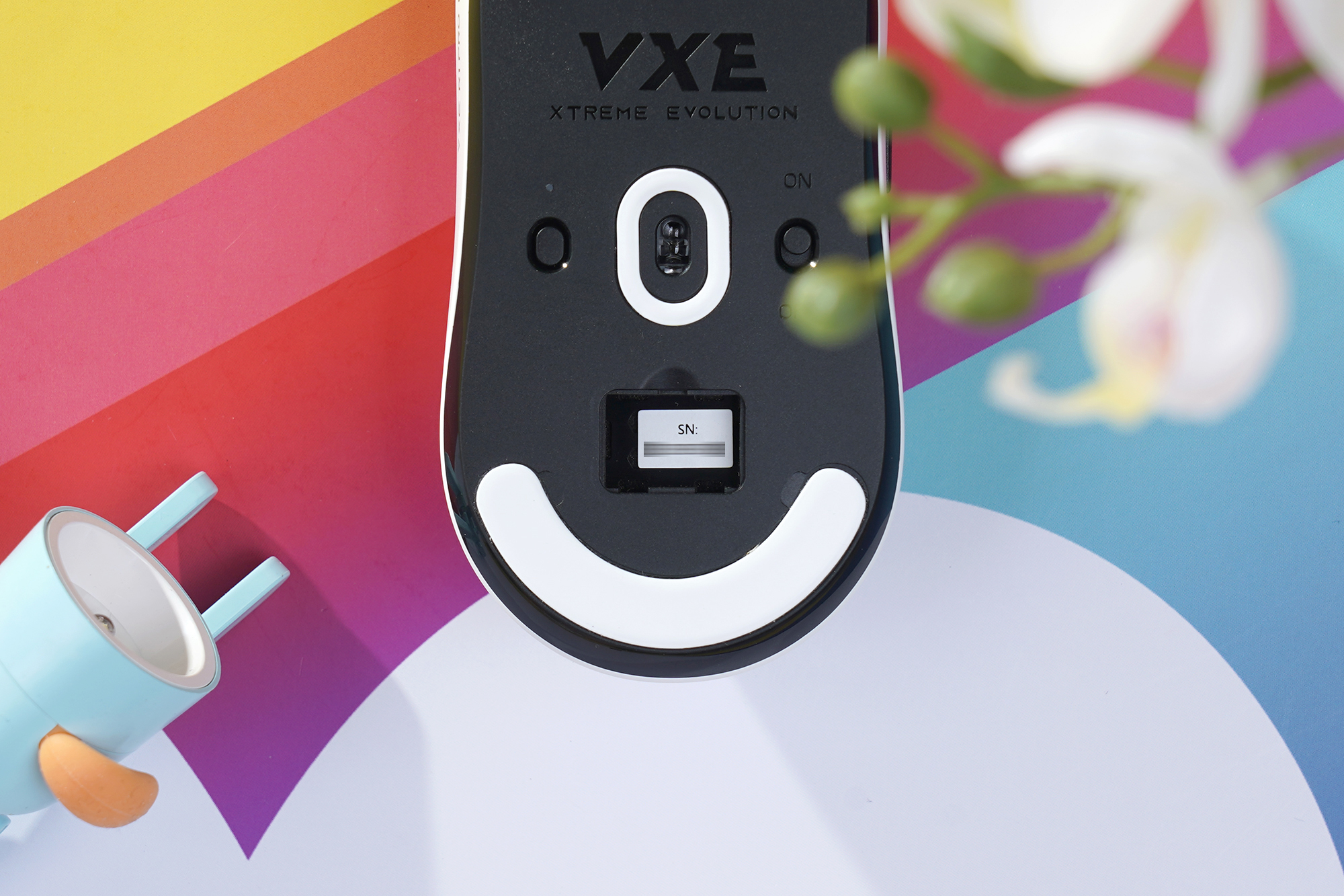 바닥의 아래쪽을 살펴보면 2.4G 무선 수신기를 수납할 수 있는 별도의 공간이 준비된 것을 확인할 수 있습니다. 노트북과 함께 잠자리 VXE R1 Pro MAX 초경량 게이밍 마우스를 사용하려는 분들에게 유용한 특징입니다. 참고로 블루투스 기능은 지원하지 않습니다.