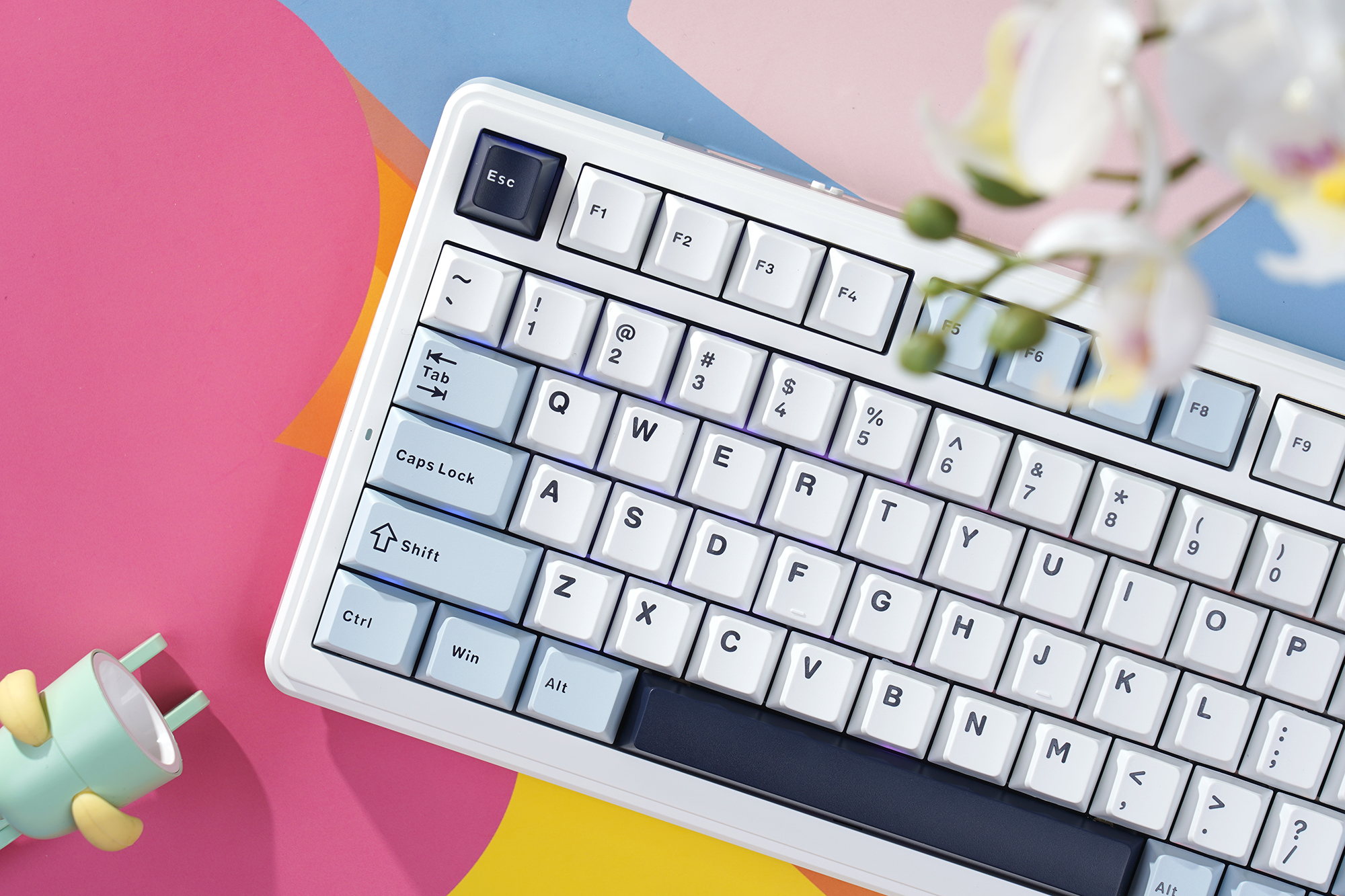 독거미 AULA F99 유무선 키보드를 옆에서 살펴보면 편안한 타이핑을 위한 스텝스컬쳐2 가 적용된 것을 확인할 수 있습니다. 대부분의 키보드에서 사용되는 구조라서 적응하는데 어려운 부분은 없습니다.