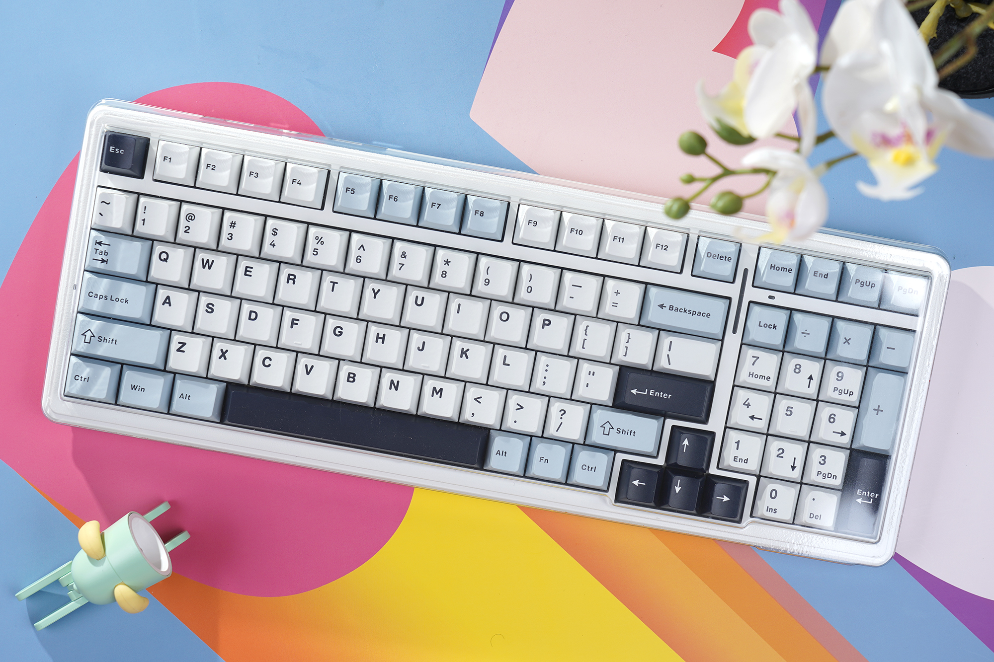 독거미 AULA F99 유무선 키보드는 기성품이기 때문에 스위치와 키캡이 완전히 조립된 상태로 판매됩니다. 제가 구매한 색상은 블루이지만 퍼플, 그레이, 그린 등의 제품이 준비되어 있습니다. 컬러 조합은 생각보다는 별로라고 생각되었습니다.