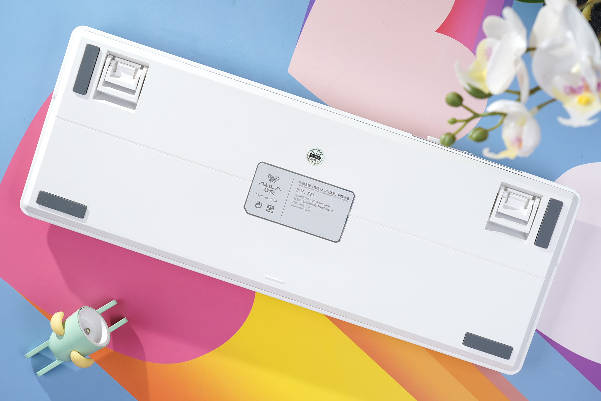 독거미 AULA F99 유무선 키보드의 바닥을 살펴보면 모서리 부분에 고무 지지대가 배치되어 있고 각도를 총 3가지로 변경할 수 있는 받침대 준비되어 있습니다. 크게 특별한 부분은 없는 것 같습니다.