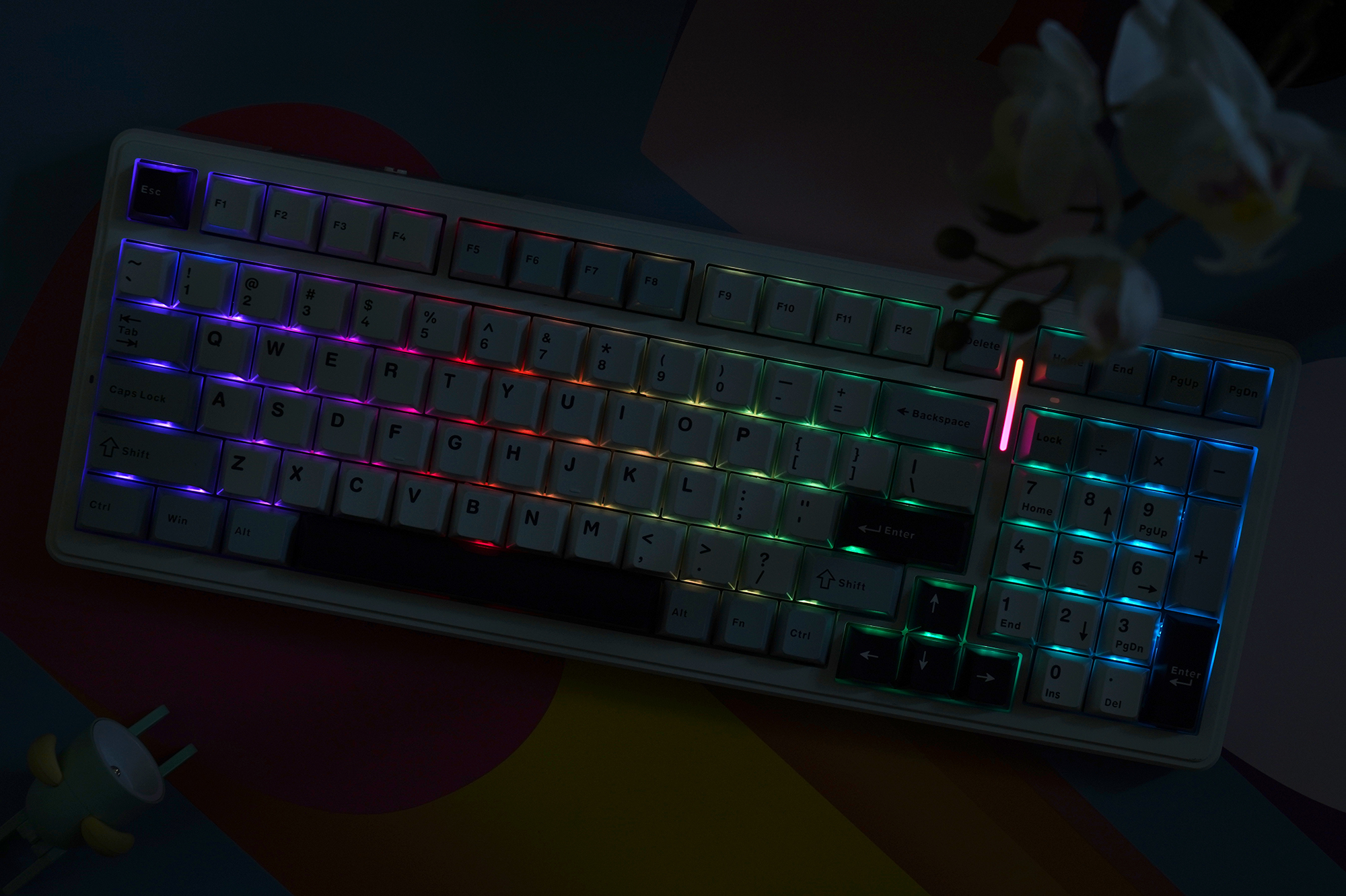 독거미 AULA F99 유무선 키보드의 특징을 살펴보면 가스켓 마운트 설계가 적용되었고 99키 ANSI 레이아웃으로 제작되었습니다. 그 외에도 RGB LED 백라이트를 내장했습니다. 참고로 가스켓 마운트 방식은 키보드의 위치에 상관없이 일정한 키감을 제공한다는 장점이 있습니다.