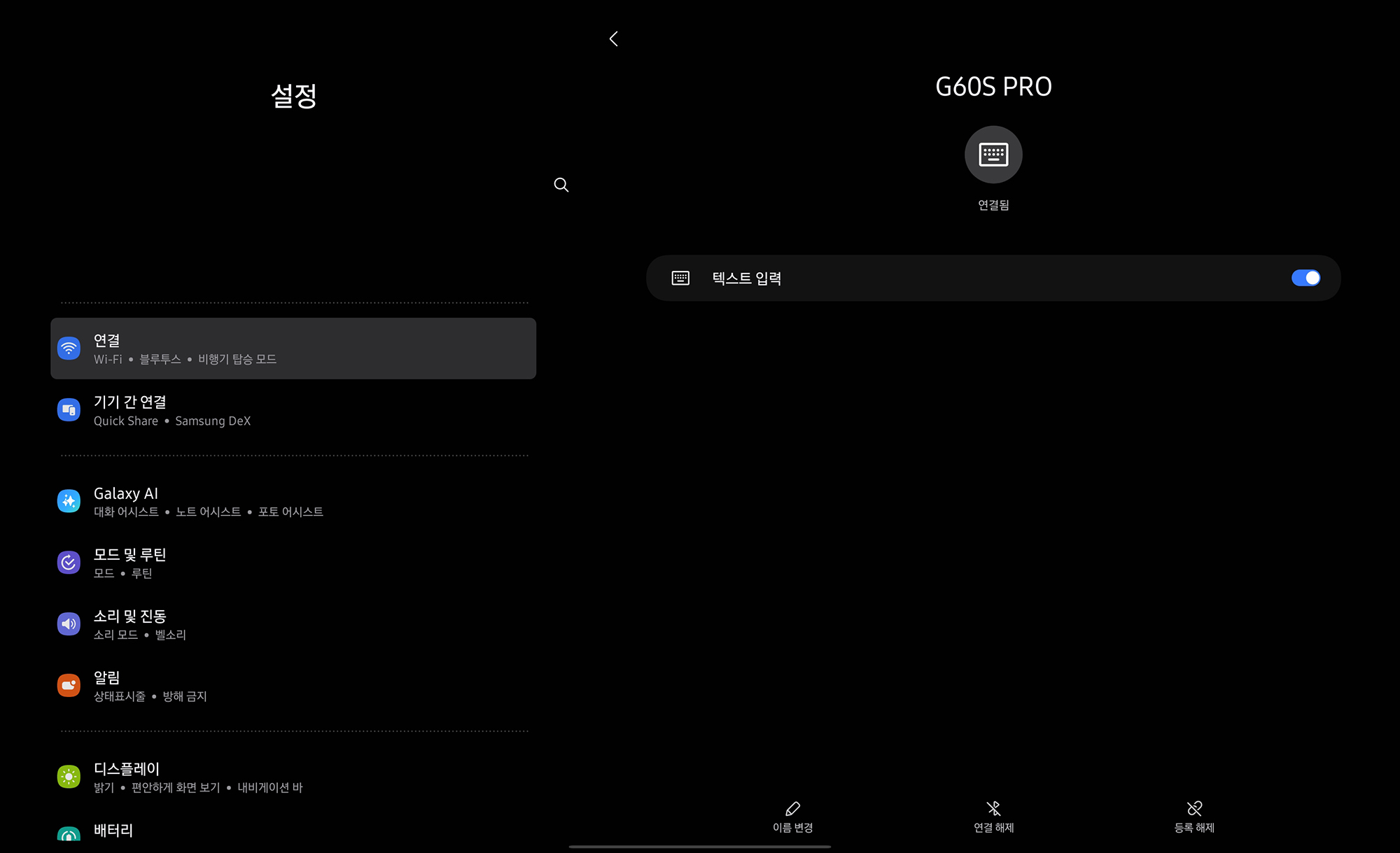 60S PRO 무선 에어 마우스는 OK + Return 키를 이용해서 블루투스 기능을 활성화할 수 있는데요.(바로 페어링 모드로 들어갑니다.) 자신이 사용하는 스마트폰이나 태블릿에서 G60S PRO라는 이름을 검색해 등록할 수 있습니다.