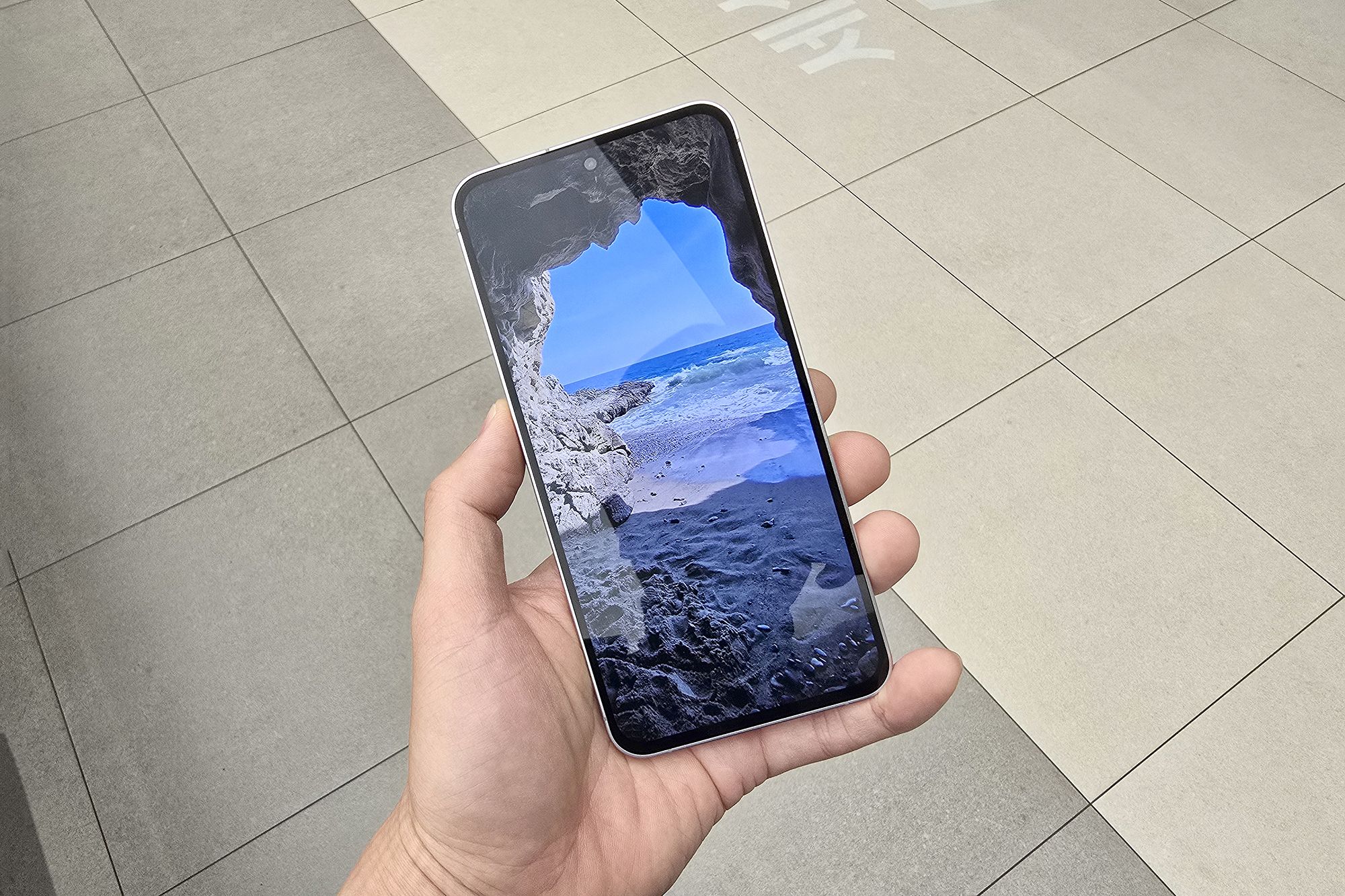 삼성 갤럭시 S24 FE에는 6.7인치(170.1mm) 1080 x 2340(FHD+) 120Hz 1,900nits Dynamic AMOLED 2X 디스플레이가 탑재되었습니다. 갤럭시 S24 시리즈처럼 플랫한 형태로 제작되었다는 점이 마음에 들었습니다. 그리고 지문 센서는 화면의 아래쪽에 통합되어 있습니다.