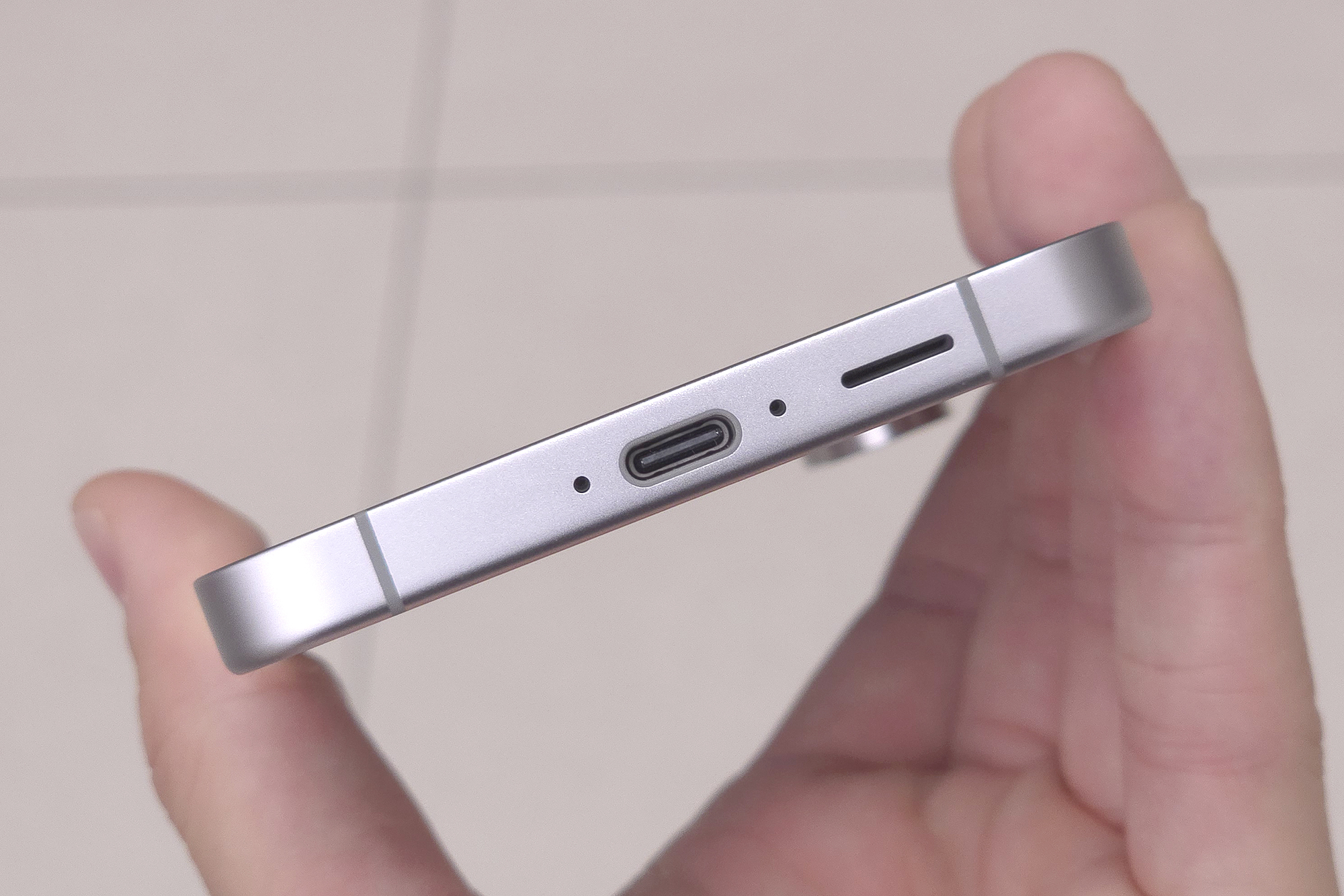 삼성 갤럭시 S24 FE의 USB-C 포트는 USB 3.2 Gen 1x1을 지원합니다. 그런데 안타까운 부분은 단자가 정확하게 중앙에 배열되지 않았다는 점입니다. 사소한 부분이지만 일부 사용자들에게는 조금 불편할 수 있을 것 같습니다.