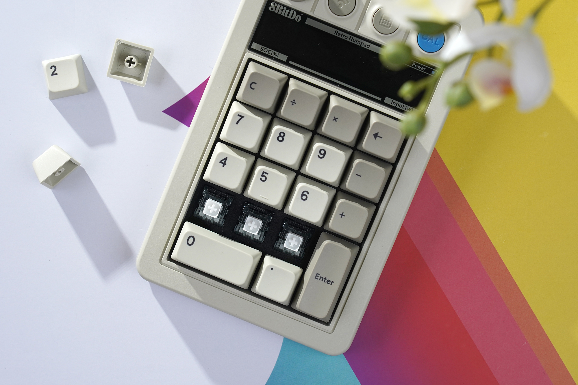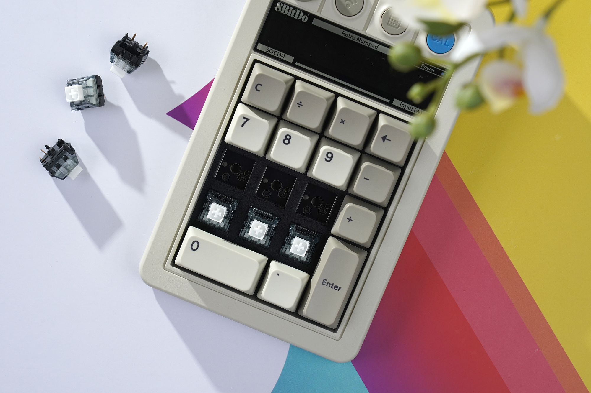8BitDo 레트로18 무선 넘버패드에는 카일의 화이트 박스 백축 V2가 탑재되었습니다. 경쾌한 타건감을 제공해 준다는 장점이 있지만 소리는 약간 시끄러운 편입니다. 그래서 사무실과 같은 공간에서 사용하기는 조금 불편할 수 있습니다. 물론 사장님이라면 상관없습니다.