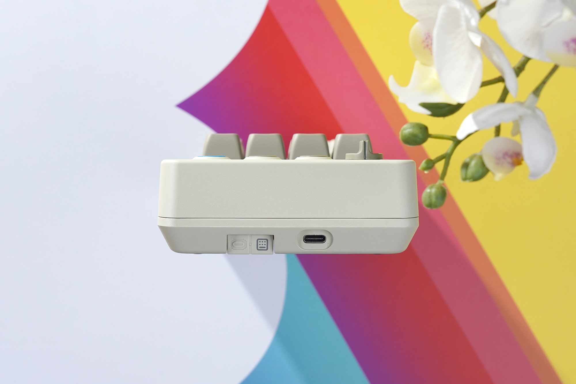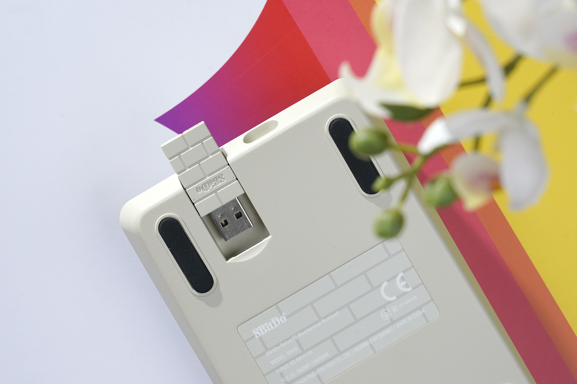 8BitDo 레트로18 무선 넘버패드의 옆면을 살펴보면 편안한 타이핑을 위해서 키캡들의 각도가 조절된 것을 확인할 수 있습니다. 일부 슬림 제품을 제외하고는 대부분 유사한 디자인을 채택하고 있습니다.