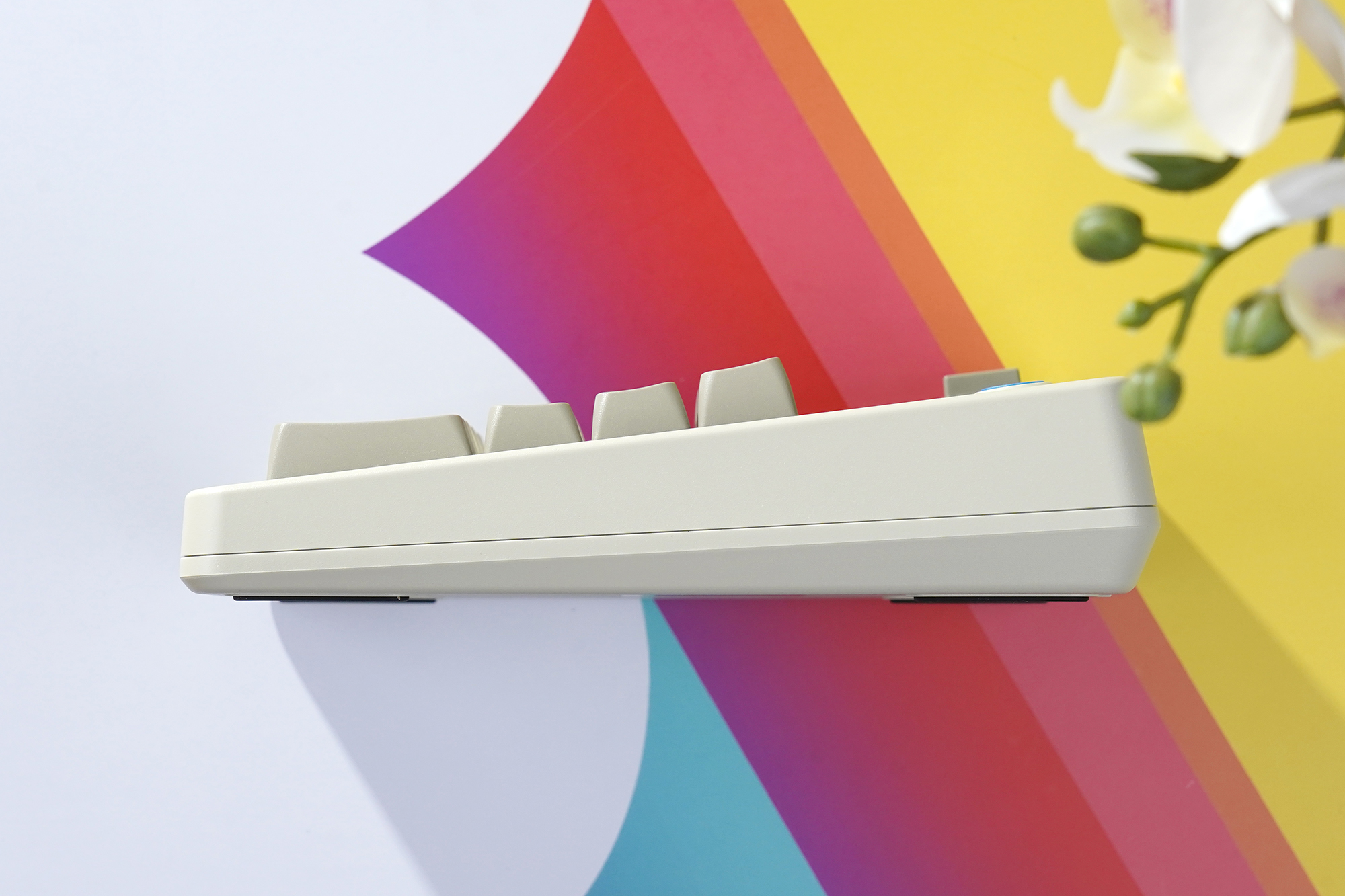 박스의 옆면을 살펴보면 주요 특징이 설명되어 있는데요. N, Fami, M 에디션은 PBT 재질의 키캡(C64 에디션은 ABS 소재)이 적용되었고 핫스왑 PCB로 제작되었습니다. 그리고 기계식 스위치가 탑재되었고 블루투스와 2.4G 무선 그리고 USB 유선 연결을 지원합니다. 그리고 모델 번호는 85HB입니다.
