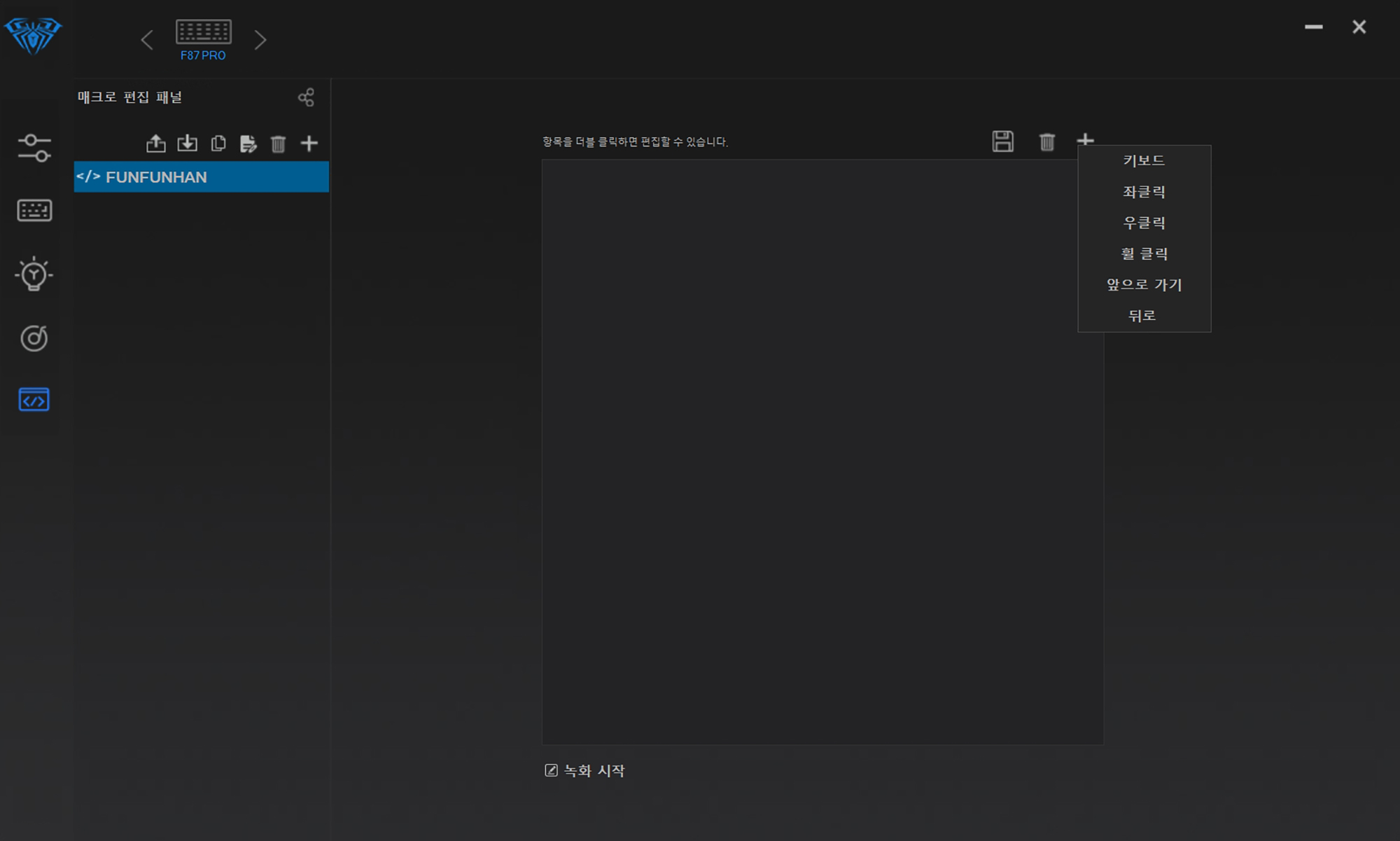 매크로 편집 패널을 살펴보면 키보드와 좌클릭, 우클릭, 휠 클릭, 앞으로 가기, 뒤로 가기와 같은 기능들을 조합해서 사용할 수 있습니다. 자신이 자주 플레이하는 게임이나 작업을 일부 자동화할 수 있습니다.