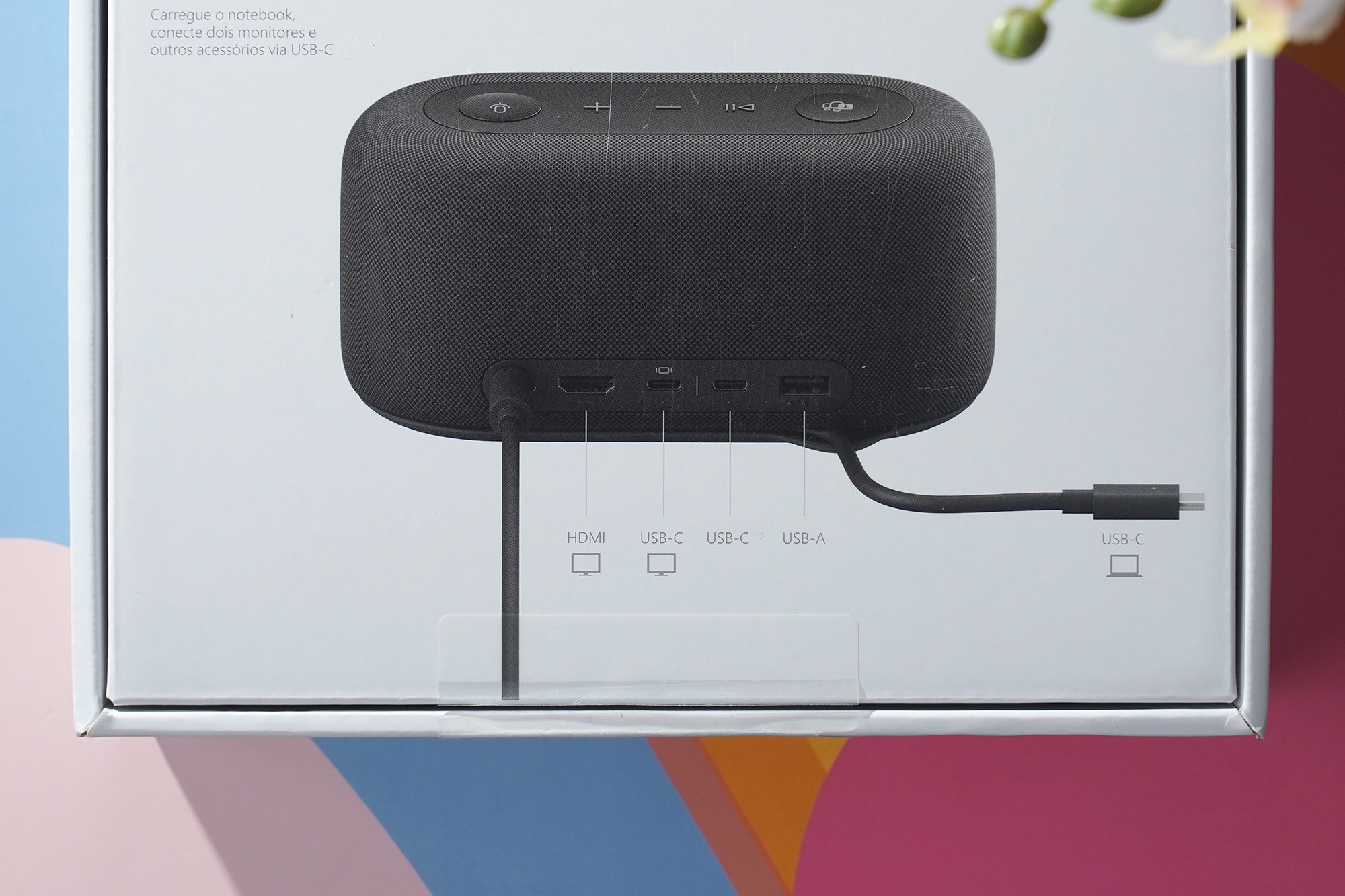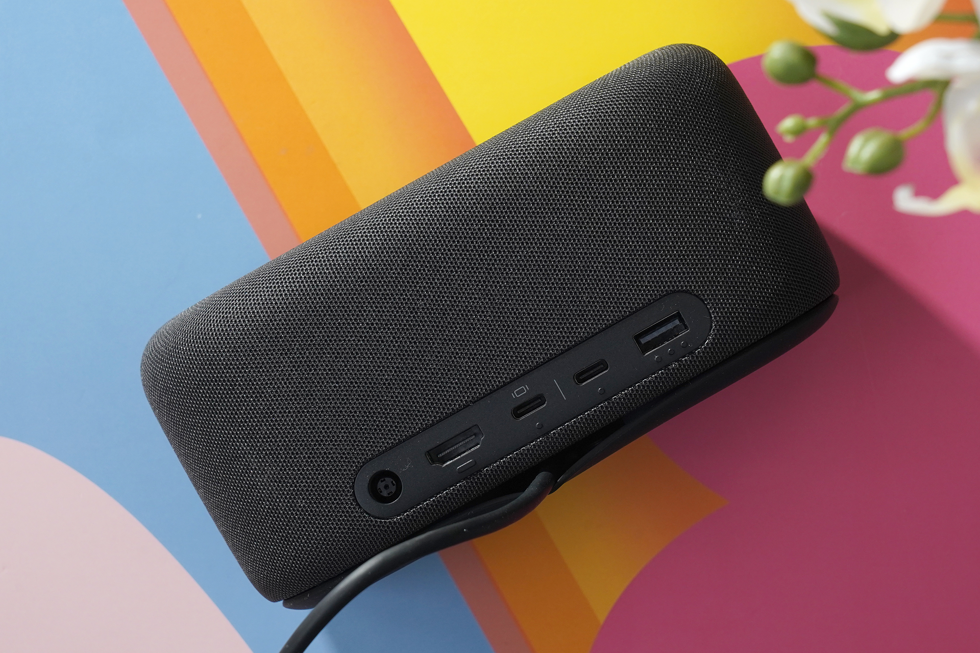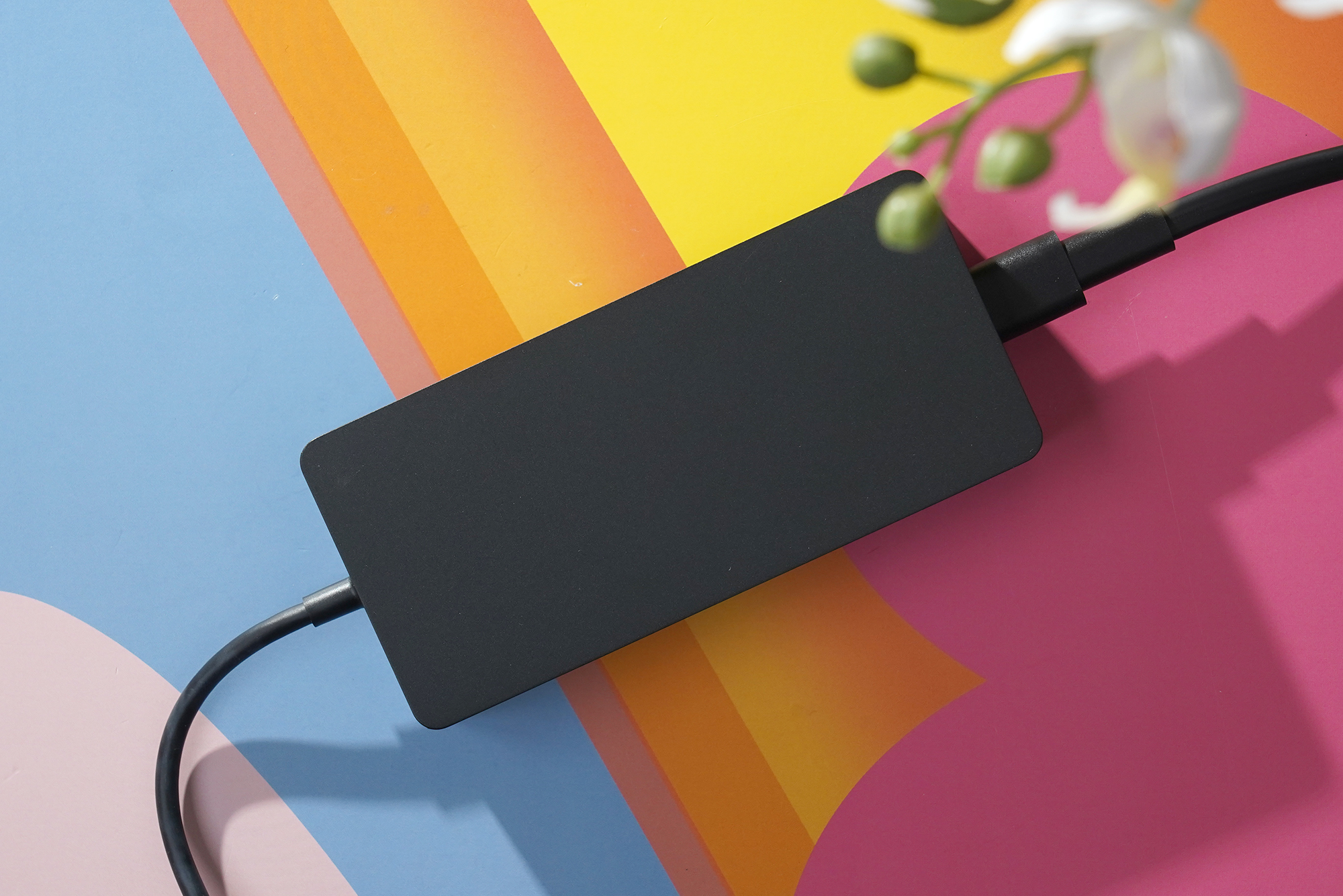 마이크로소프트 오디오독의 뒷면을 살펴보면 포트들이 준비되어 있는데요. 왼쪽부터 파워잭과 HDMI 2.0 그리고 USB-C3.1 Gen2/DP, USB-C 3.1 Gen2, USB-A 3.1 Gen2이 탑재되었습니다. 일반적인 USB 허브와 크게 다르지 않은 모습을 보여주고 있습니다.