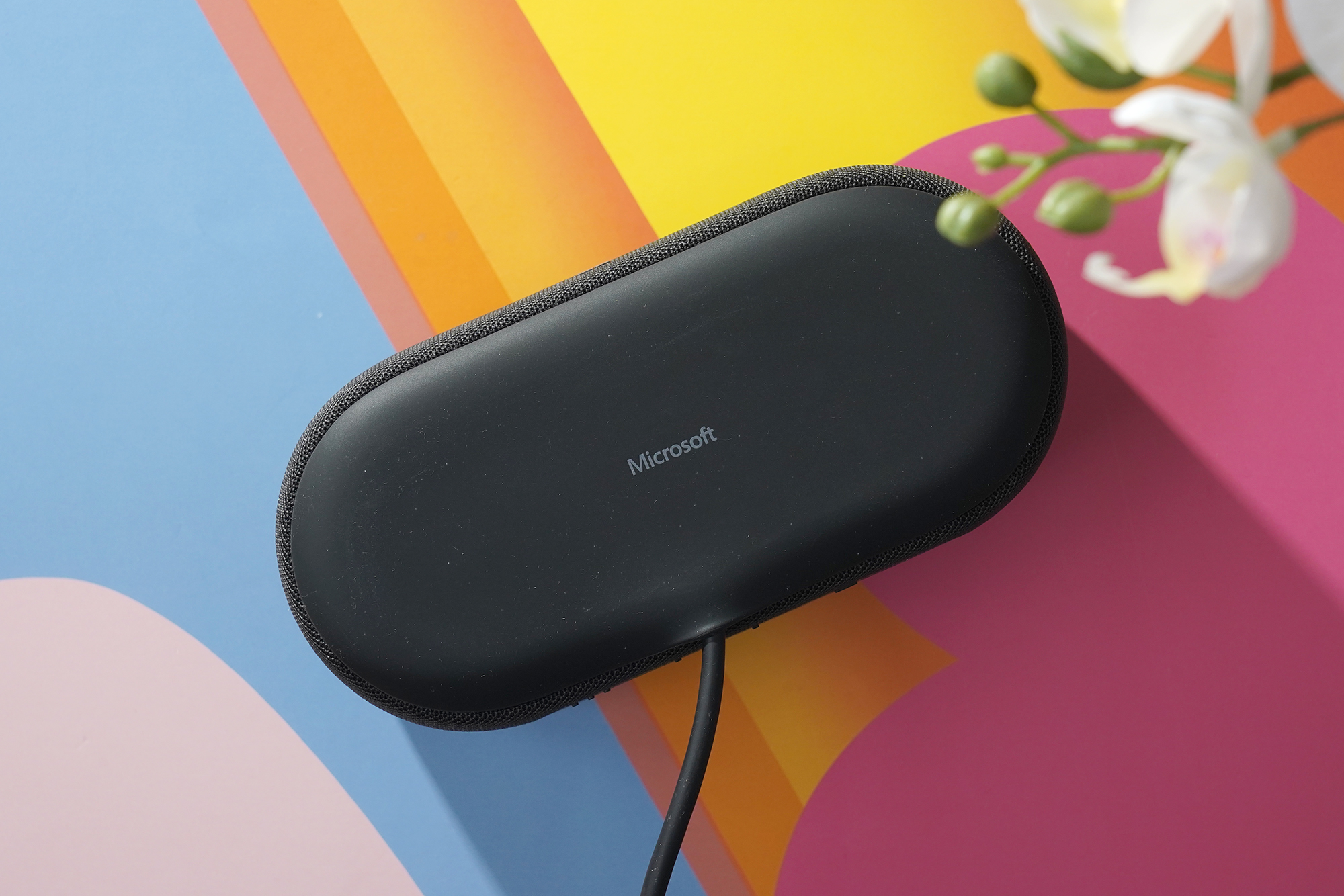 마이크로소프트 오디오독은 무광택 블랙 색상으로 제작되었는데요. 사무용으로 출시된 제품이라서 부담스럽지 않은 느낌입니다. 그리고 노트북에 연결하는 USB-C 케이블의 경우에는 본체에 고정된 형태로 제작되었습니다.