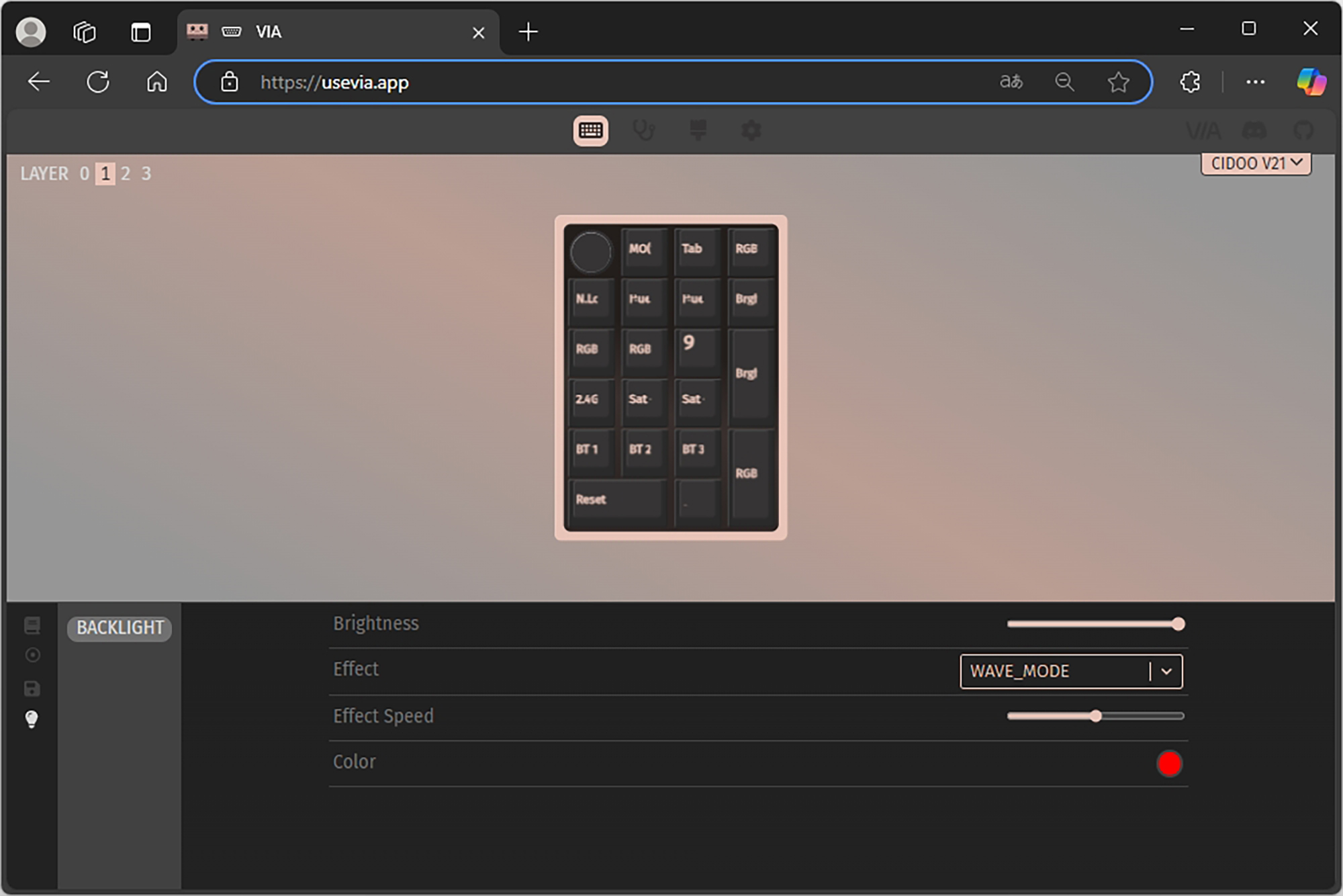 CIDOO V21 넘버패드의 핵심 기능 중의 하나는 VIA를 지원합니다. 커스텀 키보드의 키 매핑을 쉽게 설정할 수 있게 도와주는 소프트웨어로 범용적으로 활용할 수 있다는 특징과 함께 강력한 기능을 지원합니다. 우선 아래의 링크에서 펌웨어와 JSON 파일을 다운로드 받아야 합니다.