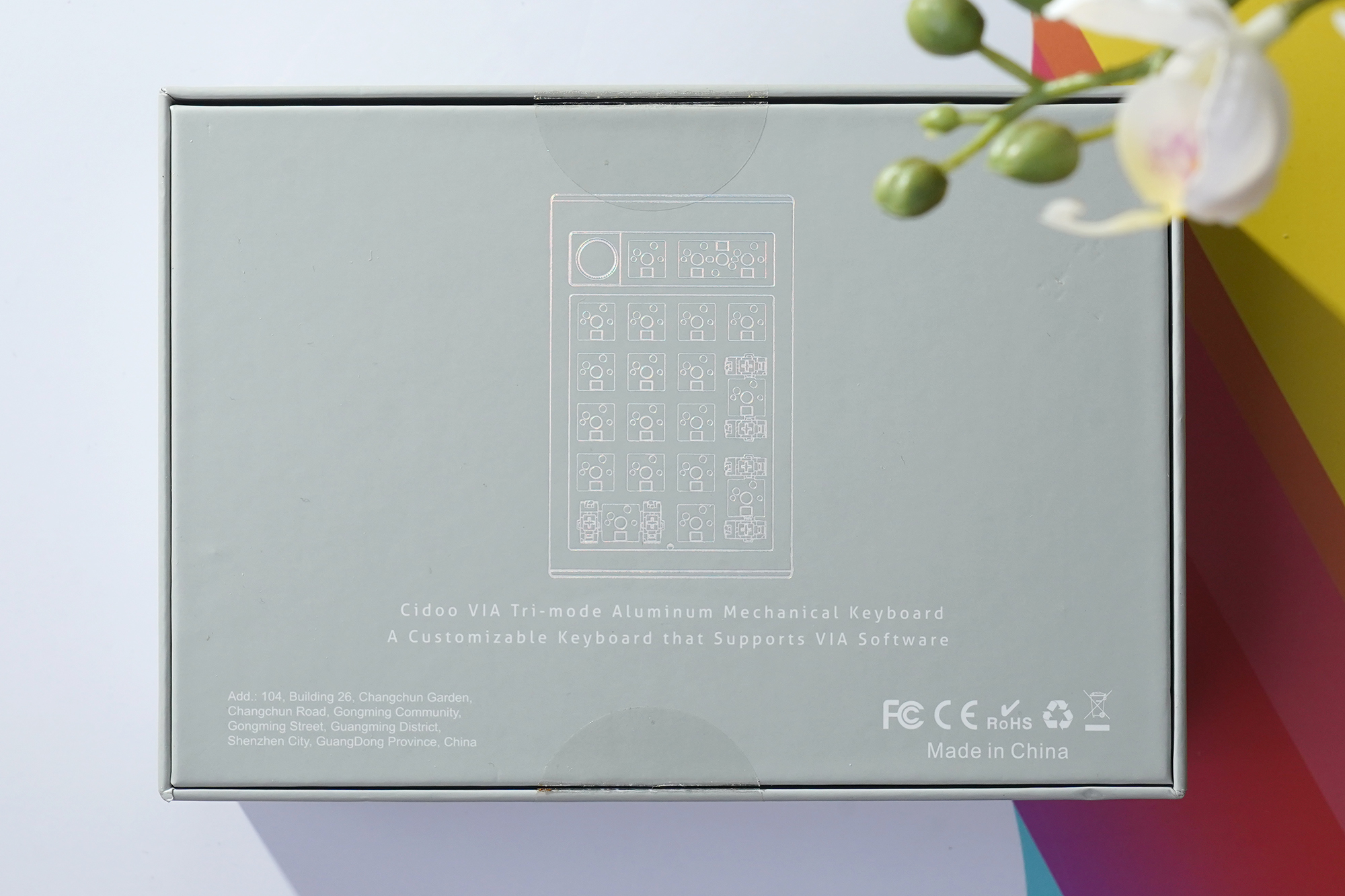 박스의 뒷면에는 CIDOO V21 넘버패드의 핵심 기능이 설명되어 있는데요. 핵심은 VIA를 지원하는 유선/2.4G무선/블루투스 3가지 모드를 지원하는 알루미늄 기계식 키보드라는 점입니다. 사실 최근에 출시되는 중국발 커스텀 키보드들은 대부분 3모드 기능을 지원하는데요. 원칩으로 해결할 수 있는 솔루션이 있는 것으로 보입니다.