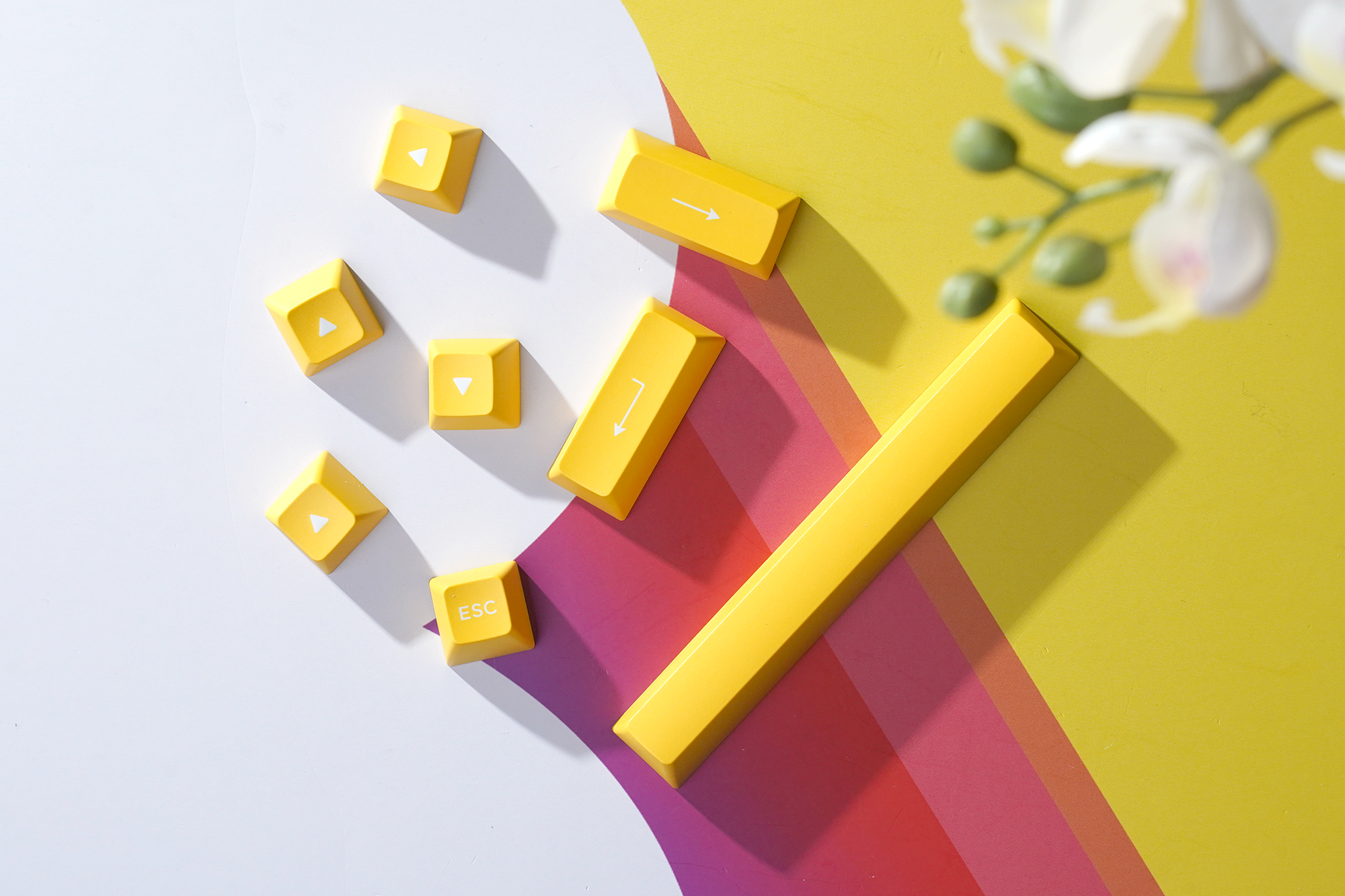 노란 색상의 여분 포인트 키캡도 제공된다는 점이 재미있는 부분인데요. 방향키와 ESC, 스페이스바, 백 스페이스바, 엔터키로 구성되어 있습니다. 자신의 취향에 맞게 교체해서 사용하는 것이 좋을 것이 좋을 것 같습니다.