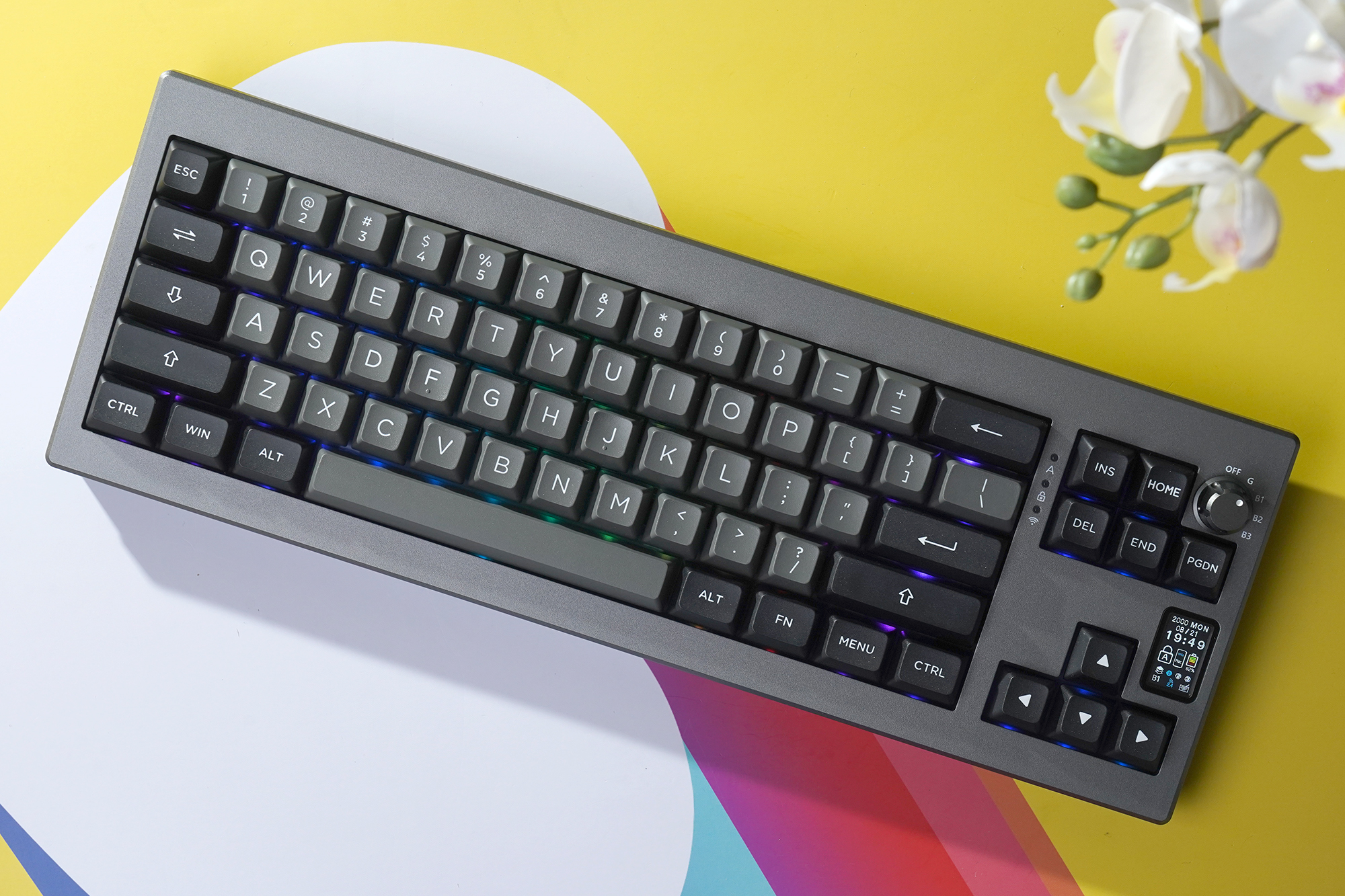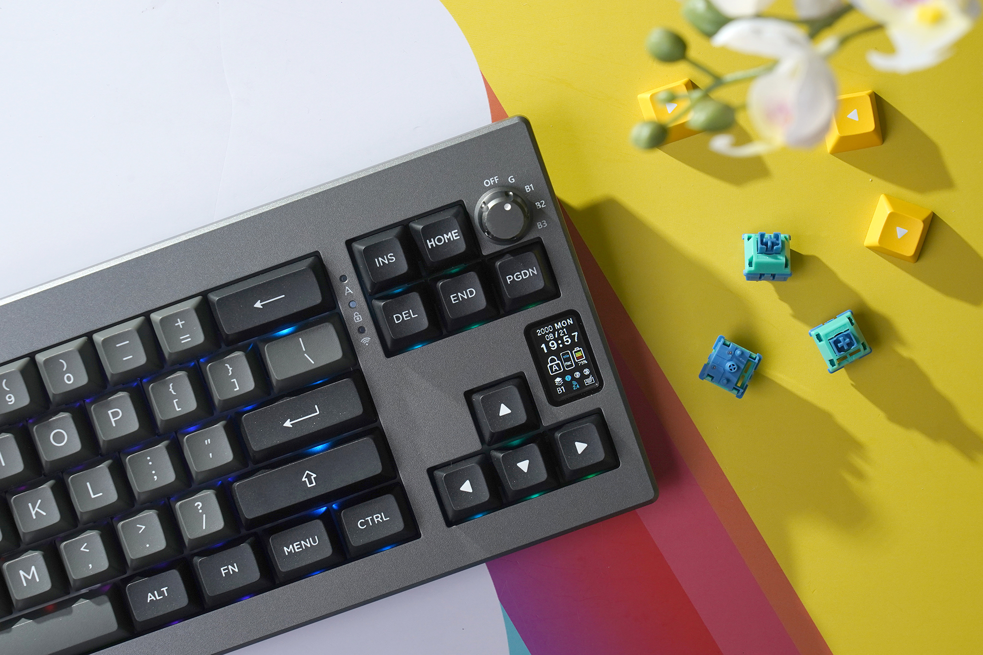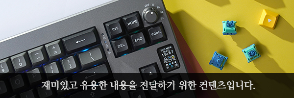Epomaker Shadow-X 무선 키보드에서 가장 주목해 보아야 할 부분은 바로 3모드를 변환할 수 있는 노트(KNOB)와 함께 컬러 LCD 픽셀 스크린을 탑재했다는 점입니다. 그래서 시간과 날짜 그리고 연결과 배터리 상태를 직관적으로 파악할 수 있습니다. 상당히 유용한 부분이라고 할 수 있고 최근 커스텀 키보드에서도 일부 도입되고 있습니다.