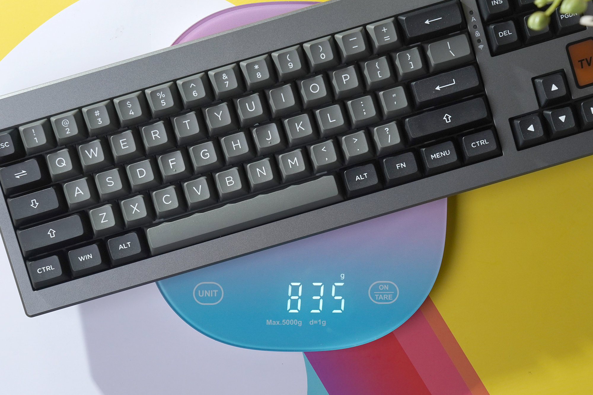Epomaker Shadow-X 무선 키보드의 무게는 약 835g으로 측정되었습니다. 플라스틱으로 제작된 제품이라서 적당한 수준이라고 판단되었습니다. 사실 키보드는 무거울수록 안정적으로 사용할 수 있지만 휴대성 부분에서는 단저이 있습니다.
