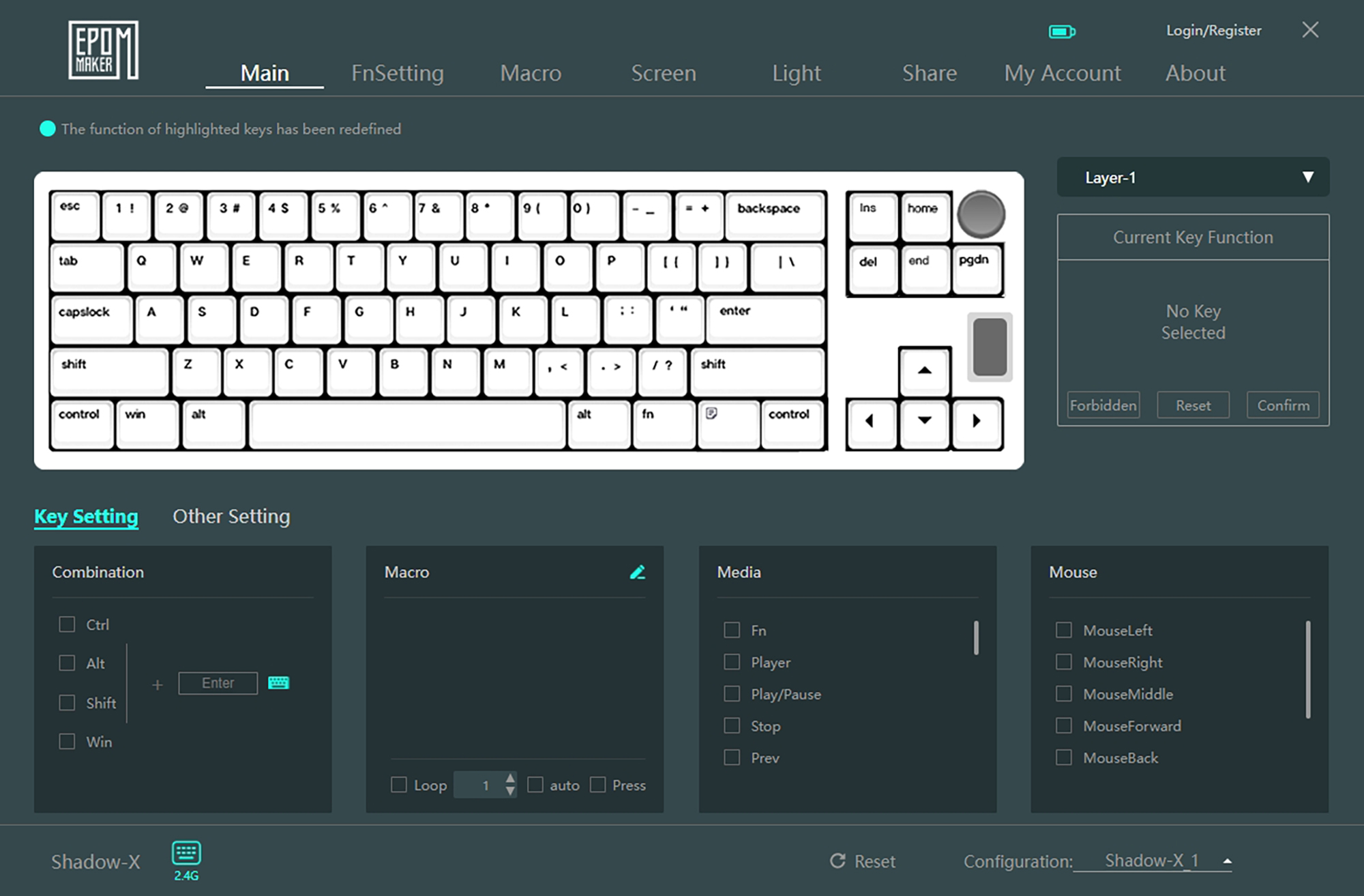Epomaker Shadow-X 무선 키보드는 전용 소프트웨어를 통해서 활용도를 높일 수 있습니다. 프로그램은 아래 홈페이지에서 다운로드 받을 수 있는데요. 유용한 부분은 마이크로소프트 윈도우는 물론이고 애플 맥OS도 지원한다는 점입니다. 참고로 최신 버전은 V2.1.79입니다.