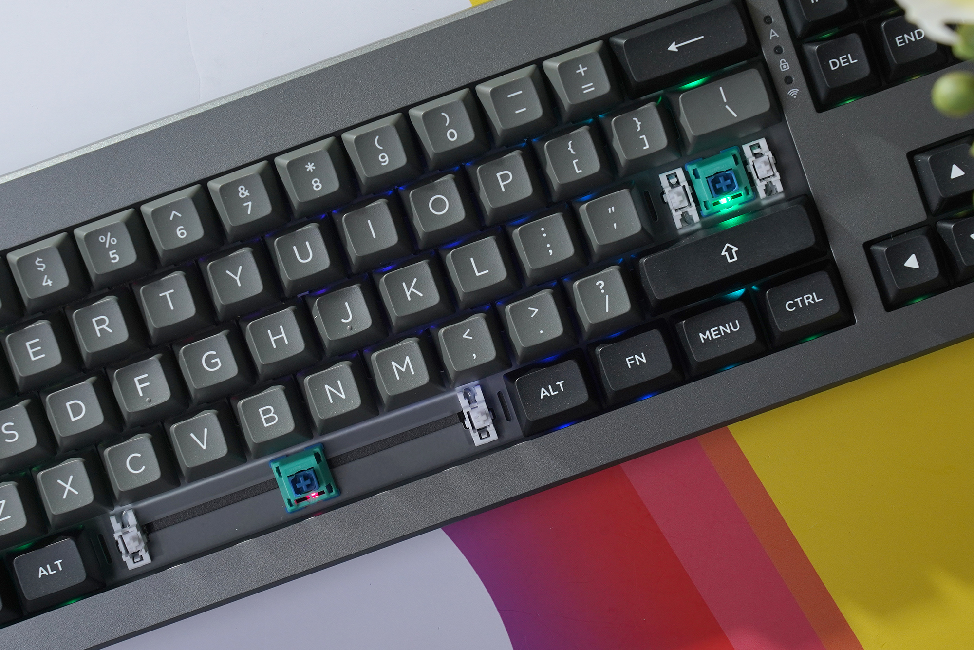 Epomaker Shadow-X 무선 키보드의 보강판은 PC 소재로 제작되었고 핫스왑 PCB를 지원합니다. 간단하게 고장 난 키캡을 교체할 수 있다는 특징이 있습니다. 그리고 키감이 마음에 들지 않는다면 전체 스위치를 교체할 수도 있는데요. 그러면 배보다 배꼽이 더 커지며 가성비에 문제가 생길 수 있습니다.