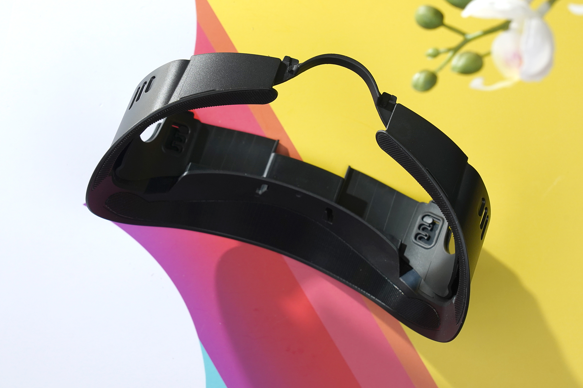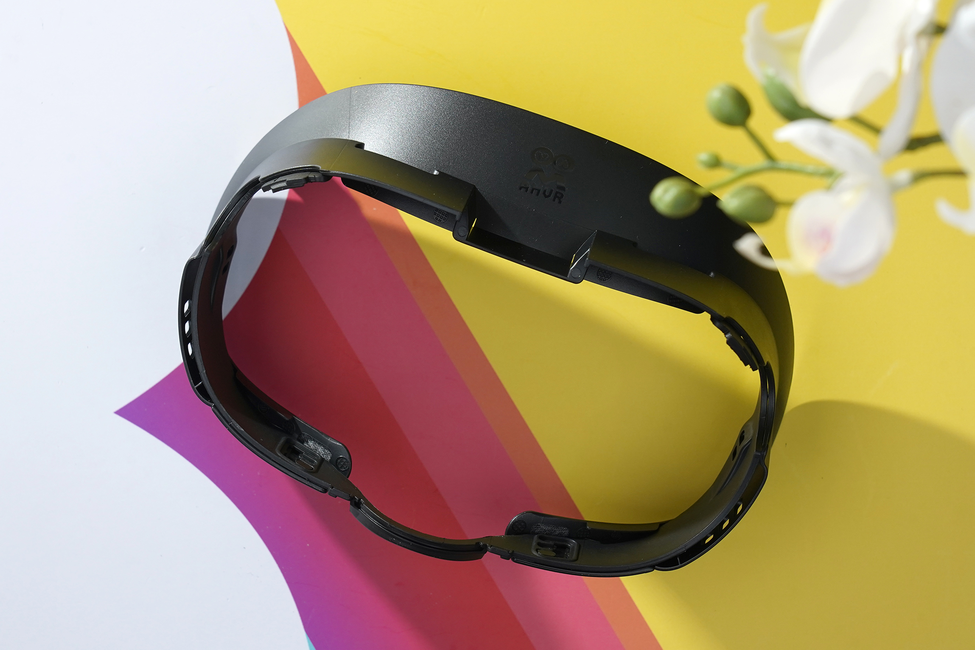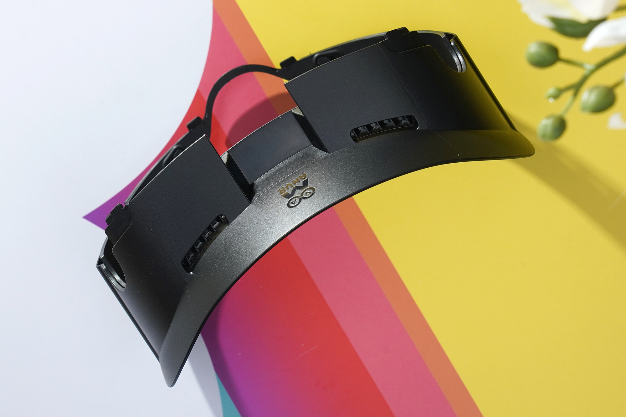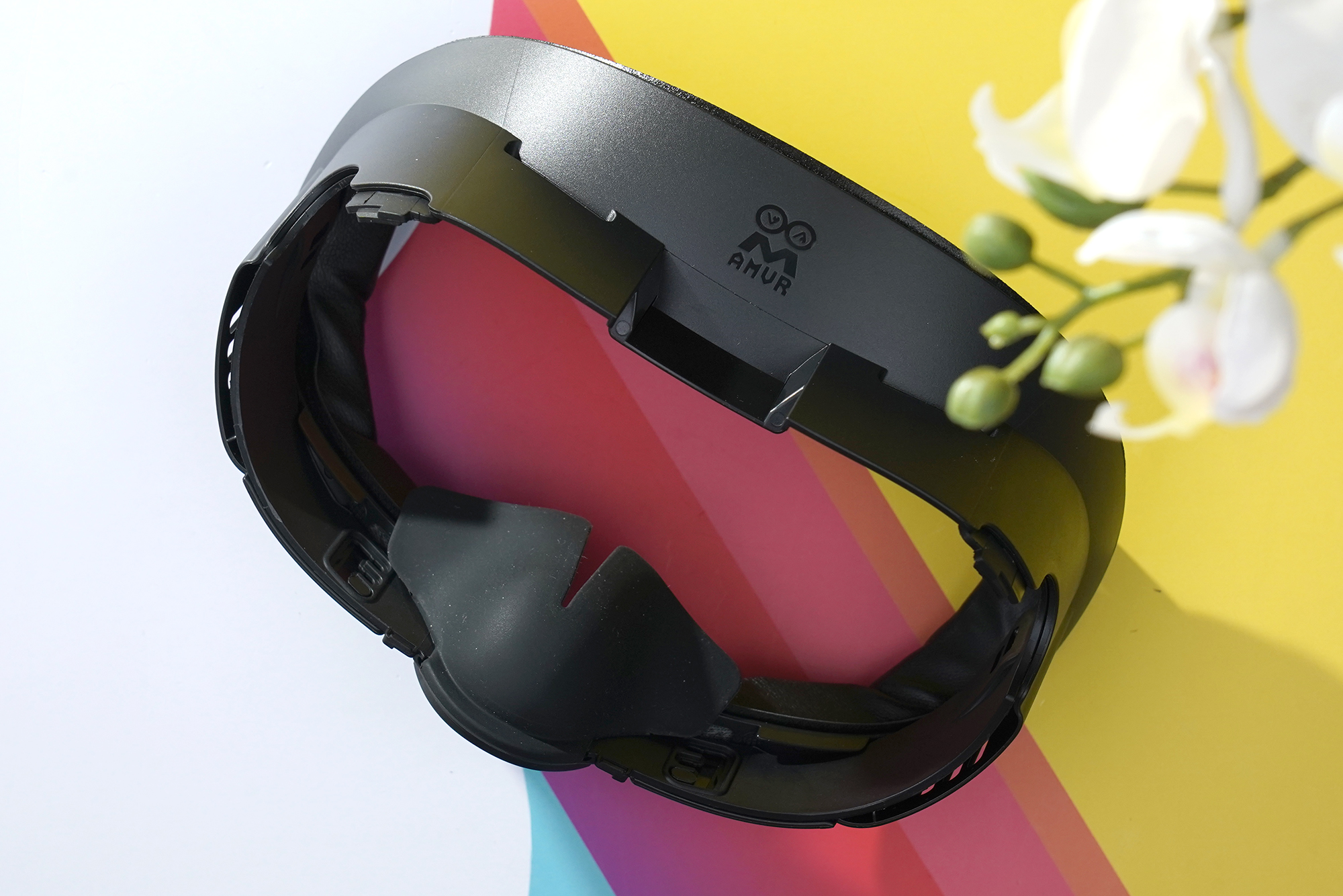 메타 퀘스트3 AMVR 안면폼은 몇 가지 부품으로 구성되어 있는데요. 가장 핵심인 인터페이스의 상단 부분을 살펴보면 상단에는 AMVR의 로고가 각인되어 있고 뒤쪽을 살펴보면 벨크로 테이프를 이용해서 안면폼을 고정할 수 있도록 디자인되었습니다. 전체적인 완성도는 기대했던 것보다는 높은 편이라고 생각되었습니다.