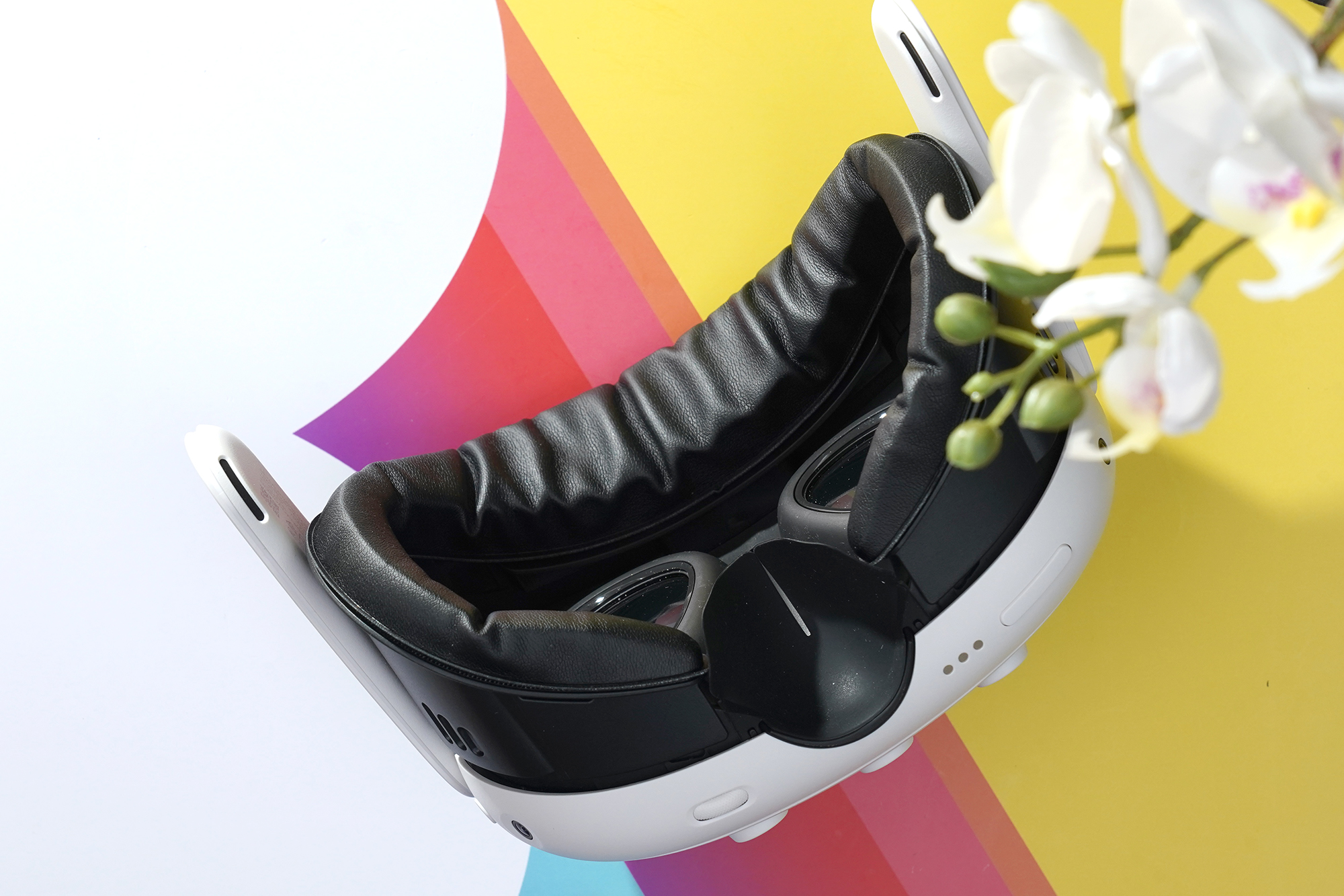 그리고 자신이 사용하고 있는 퀘스트3의 안면폼을 제거해 주어야 하는데요. 상단과 하단에 총 4개의 걸쇠로 고정되어 있는 형태이고 힘으로 잡아 당겨주면 됩니다. 그리고 기존에 제거된 메타 오리지널 안면폼은 메타 퀘스트3 AMVR 안면폼의 박스에 수납해서 보관하는 것을 추천합니다.