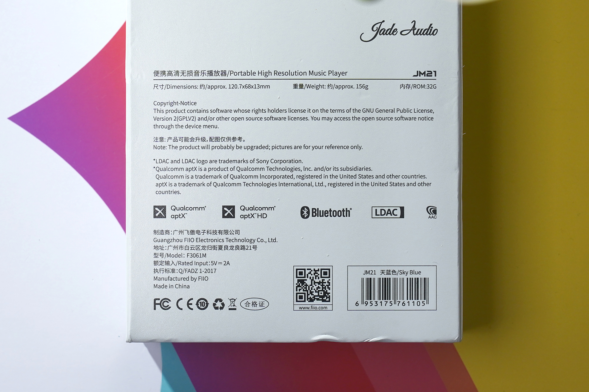 Fiio JM21 안드로이드 DAP의 패키지를 살펴보면 전면에는 포터블 하이 레졸루션 뮤직 플레이어라는 문구가 표시되어 있습니다. 그리고 알리 익스프레스에서 구매한 제품의 특성상 패키지가 바다를 건너와서 박스 자체가 깔끔한 느낌은 아닙니다.