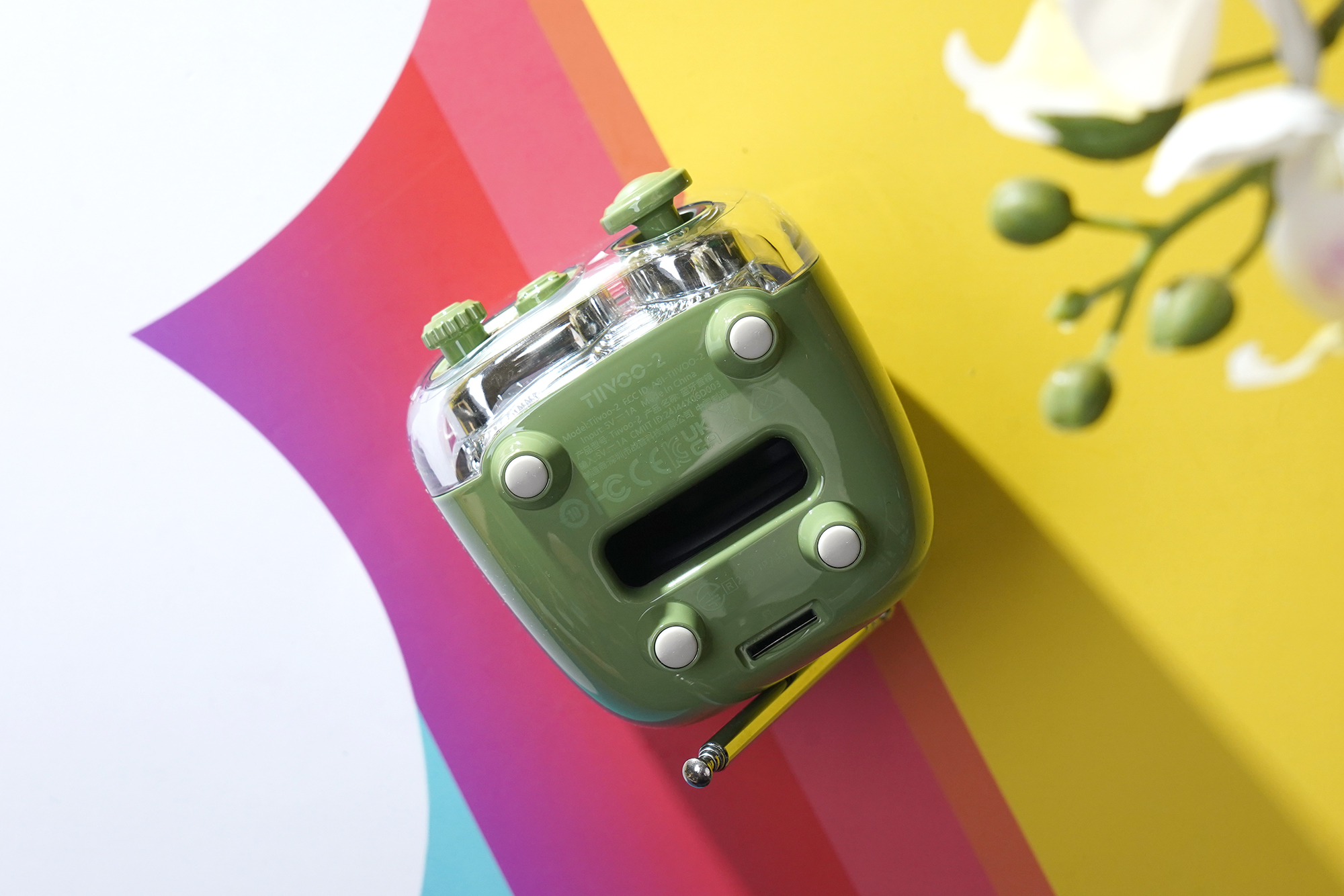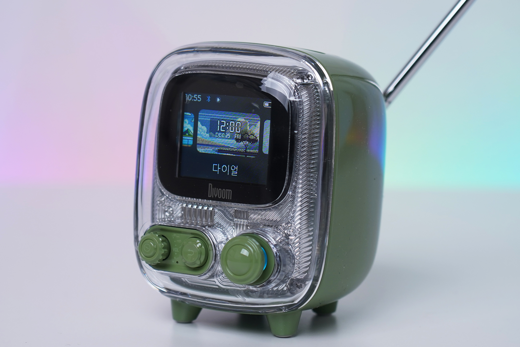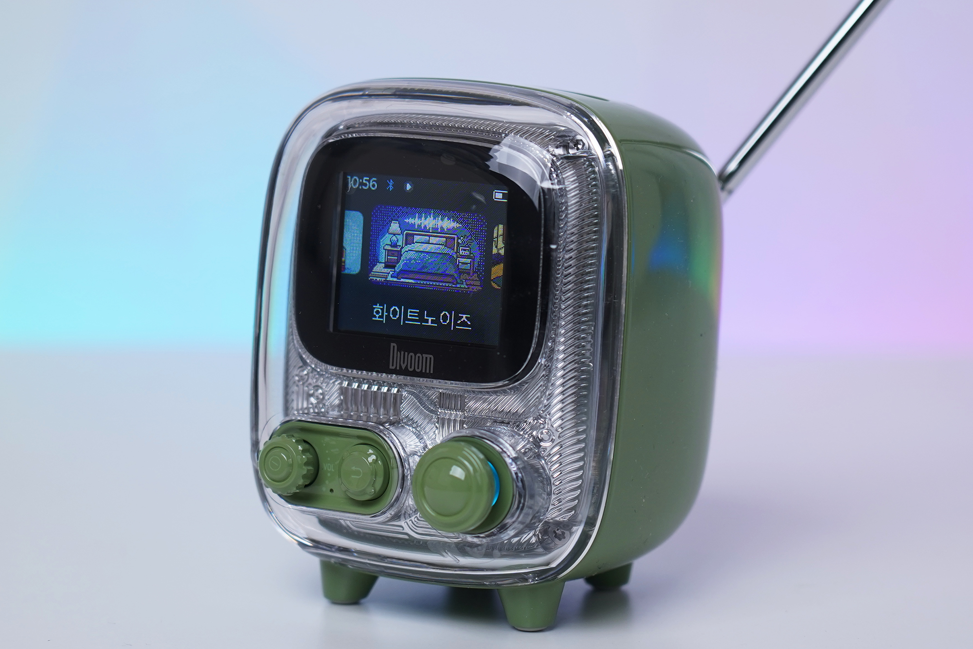 디붐 티부2(Tiivoo-2) 블루투스 스피커의 특징을 정리해 보면 앞쪽에는 픽셀 아트 디스플레이가 탑재되어서 다양한 정보를 표시할 수 있습니다. 그리고 색상은 빈티지 그린과 텐더 화이트 그리고 라이트 핑크 3가지 중에서 컬러를 선택할 수 있습니다.