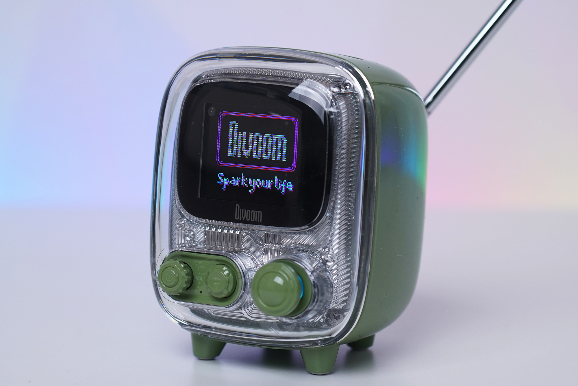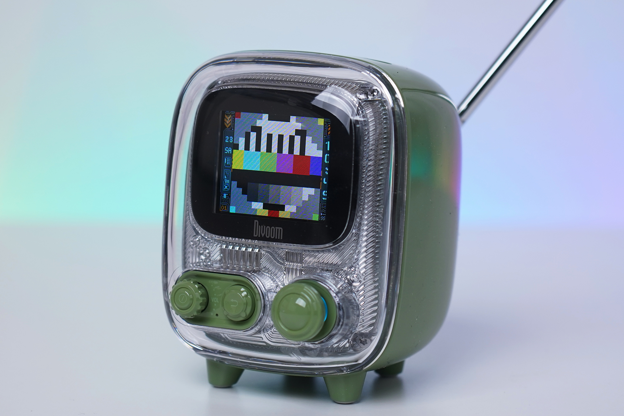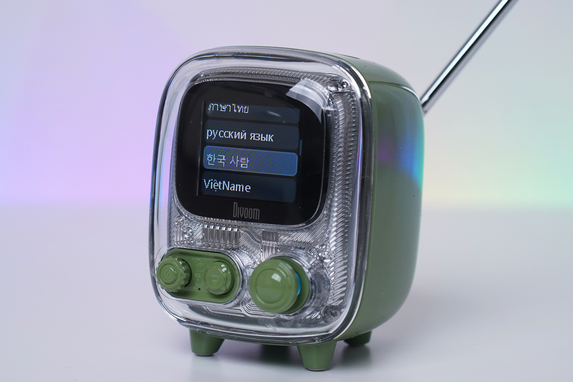 디붐 티부2(Tiivoo-2) 블루투스 스피커의 특징을 정리해 보면 앞쪽에는 픽셀 아트 디스플레이가 탑재되어서 다양한 정보를 표시할 수 있습니다. 그리고 색상은 빈티지 그린과 텐더 화이트 그리고 라이트 핑크 3가지 중에서 컬러를 선택할 수 있습니다.