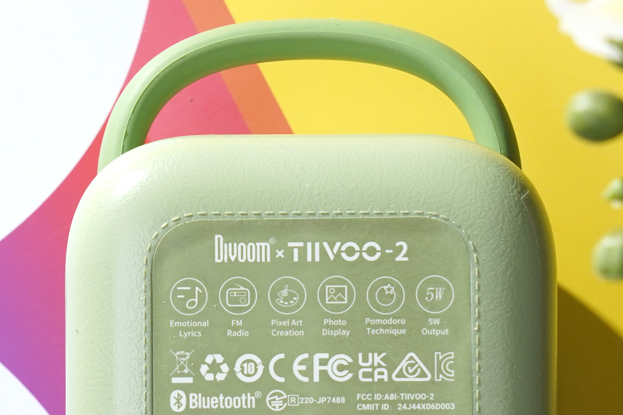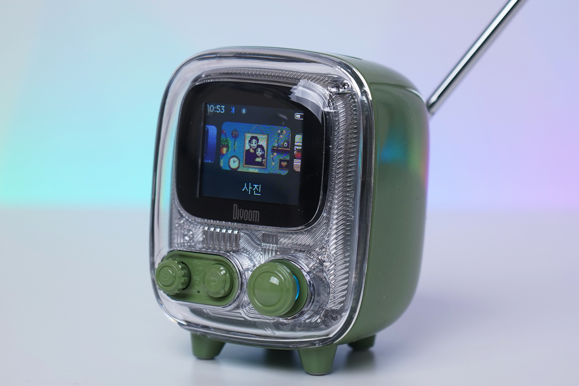 디붐 티부2(Tiivoo-2) 블루투스 스피커의 특징을 정리해 보면 앞쪽에는 픽셀 아트 디스플레이가 탑재되어서 다양한 정보를 표시할 수 있습니다. 그리고 색상은 빈티지 그린과 텐더 화이트 그리고 라이트 핑크 3가지 중에서 컬러를 선택할 수 있습니다.