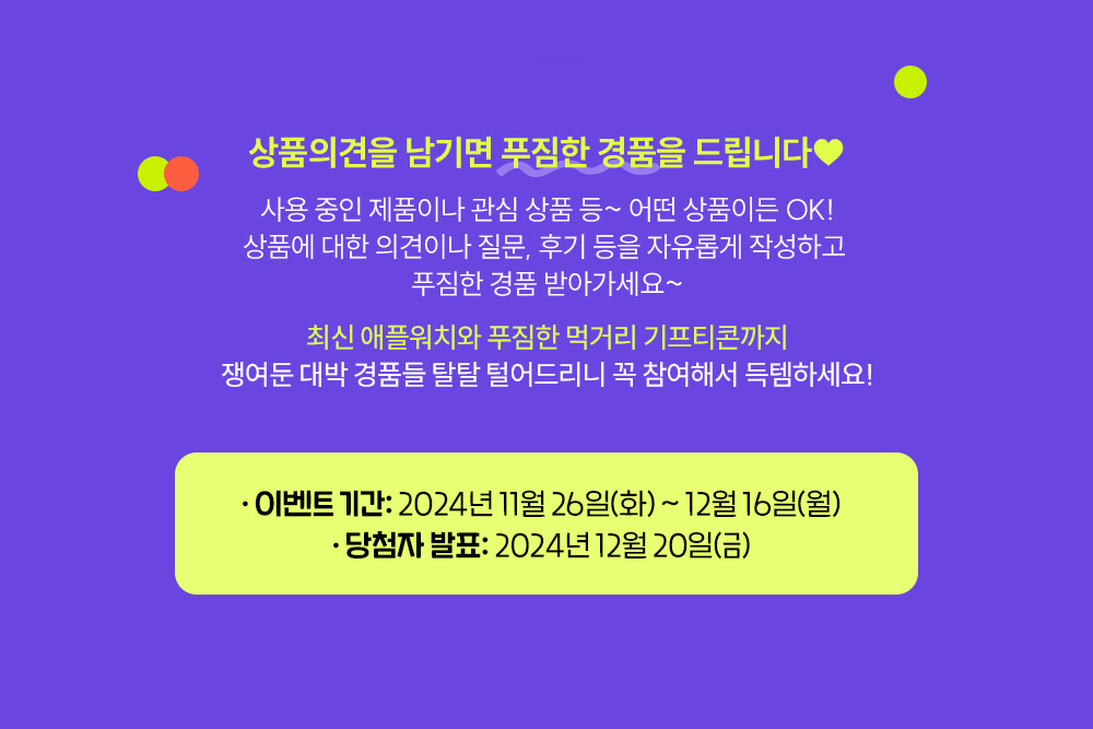 상품의견 이벤트 바로가기 : https://event.danawa.com/dpg1_241122
