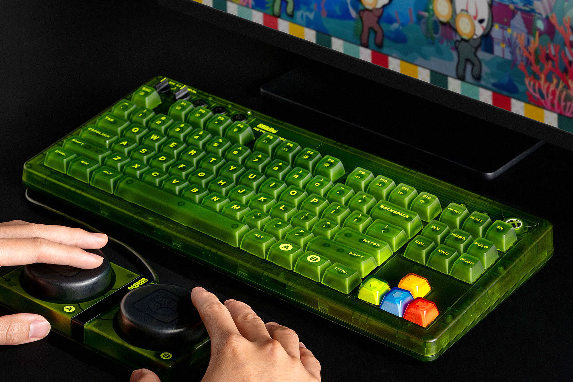 그리고 키캡의 경우에는 이중 레이어 ABS로 제작되었고 방향키의 경우에는 엑스박스 컨트롤러의 버튼 색상을 참조한 것으로 보입니다. 전체적으로 디자인은 괜찮은 편이라고 생각되었습니다.